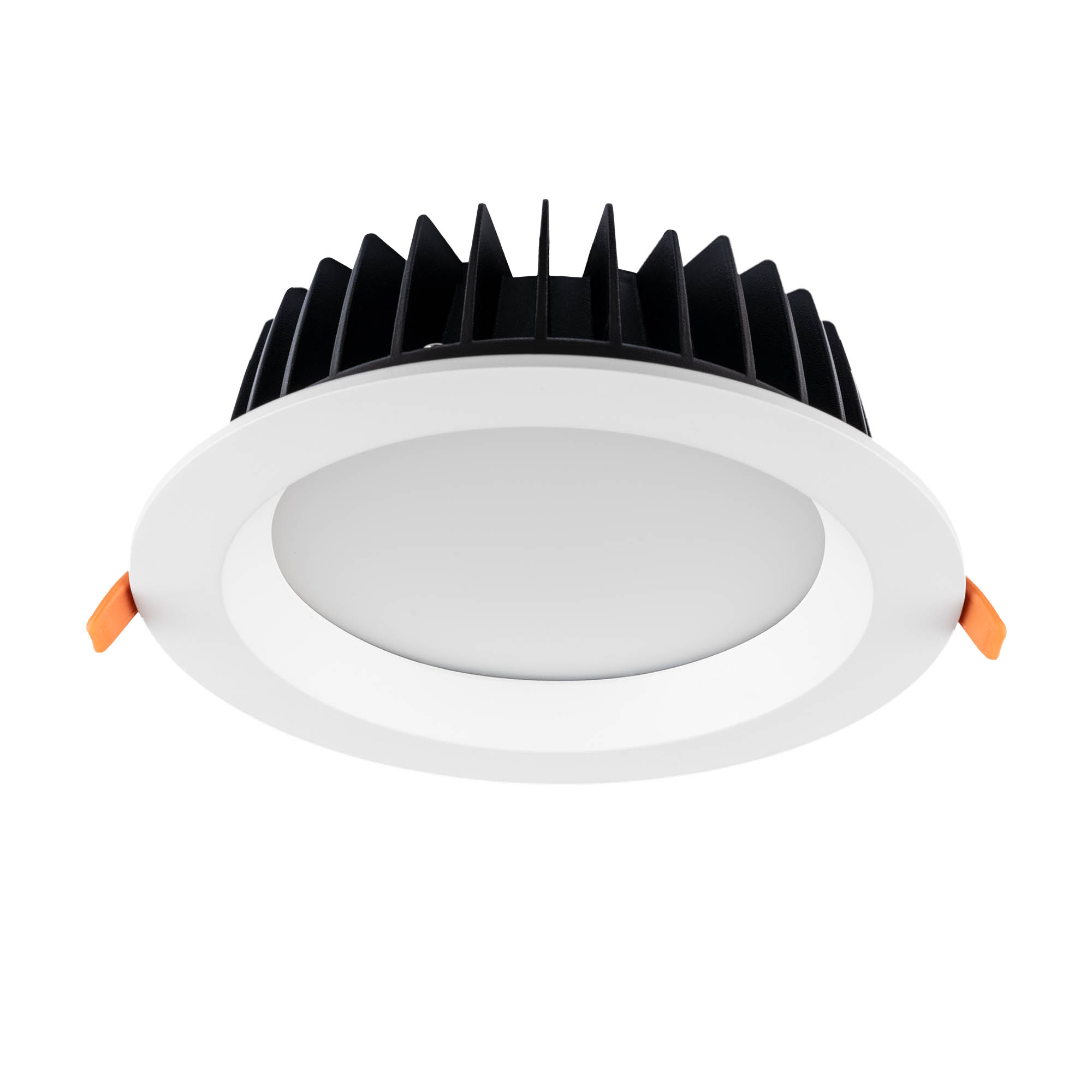 рамка от отлят алуминий, с нанесено пясъкоструйно покритие в бял цвят, корпус от алуминий в черен цвят, който служи и за радиатор, рефлектор от светлоотразителен полимер, дифузер от опалово бял РММА