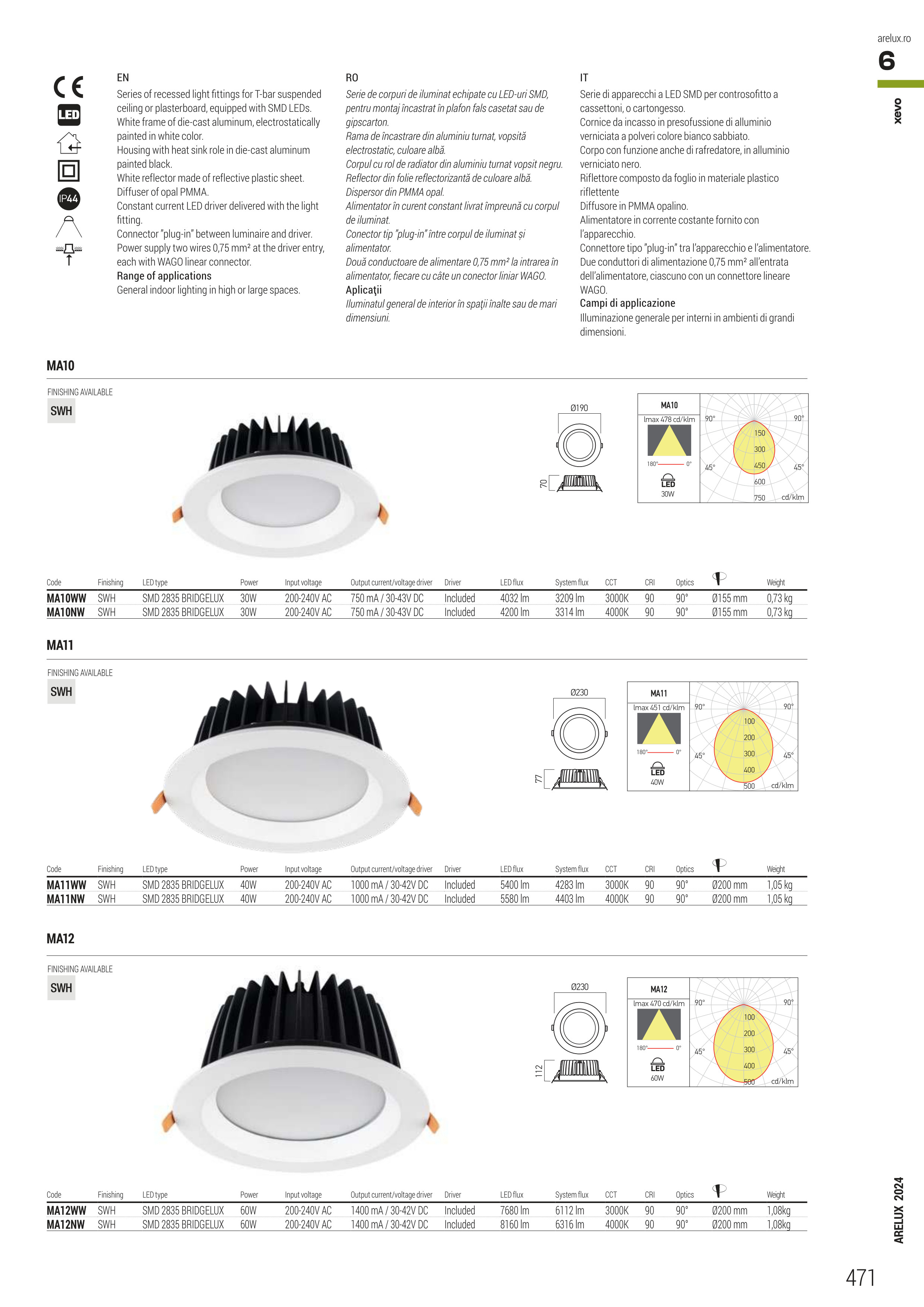 Лед луничка / луна MA12NW ще осигури комфорт и естетика във всяко помещение, в което се постави. Цялостната визия и дизайн на led лампата и вложените в изработката й материали, като рамка от отлят алуминий, с нанесено пясъкоструйно покритие в бял цвят, корпус от алуминий в черен цвят, който служи и за радиатор, рефлектор от светлоотразителен полимер, дифузер от опалово бял РММА, ще допринесат за един неповторим стил. Благодарение на дългогодишния опит в производството на лед осветление, качествените материали и строгия контрол на качеството на изработка на дизайнерската линия Redo Arelux на производителя Redo (Румъния), MA12NW е на високо европейско ниво.
