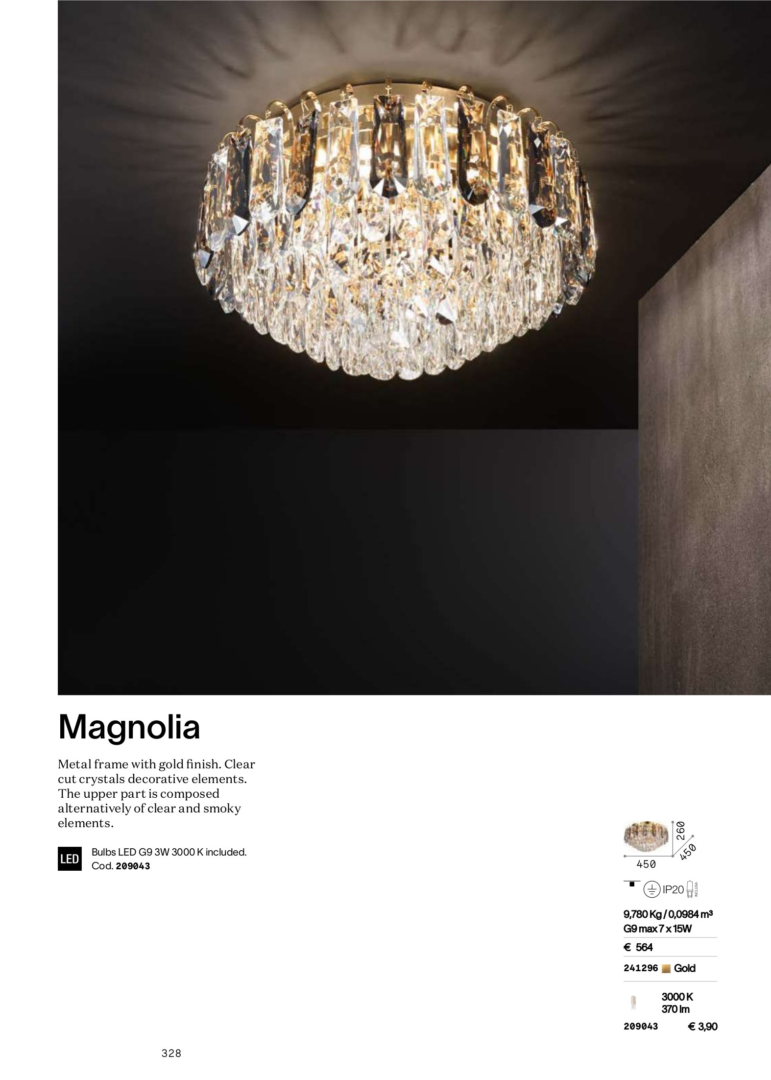 Осветителното тяло MAGNOLIA PL7 ще осигури комфорт и естетика във всяко помещение, в което се постави. Цялостната визия и дизайн на лампата и вложените в изработката й материали, като метал със златно покритие, шлифовани фасетирани кристали, в горната част са поставени и опушени кристали, ще допринесат за един неповторим стил. Благодарение на дългогодишния опит, качествените материали и строгия контрол на качеството на изработка на производителя Ideal-Lux (Италия), MAGNOLIA PL7 е на високо европейско ниво.