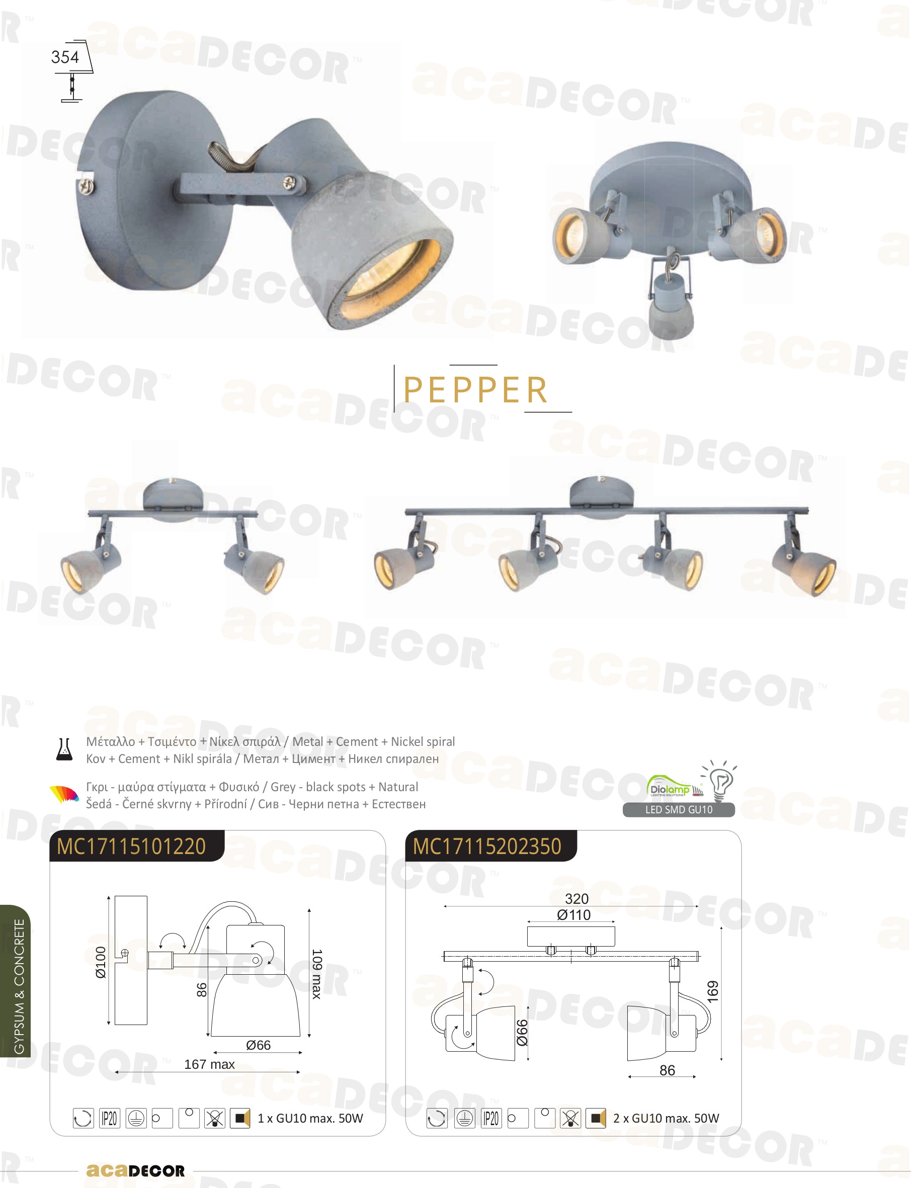 Осветителното тяло MC171153 ще осигури комфорт и естетика във всяко помещение, в което се постави. Цялостната визия и дизайн на лампата и вложените в изработката й материали, като метал в сиво, цимент, никел, ще допринесат за един неповторим стил. Благодарение на дългогодишния опит, качествените материали и строгия контрол на качеството на изработка на производителя ACA-Lighting (Гърция), MC171153 е на високо европейско ниво.