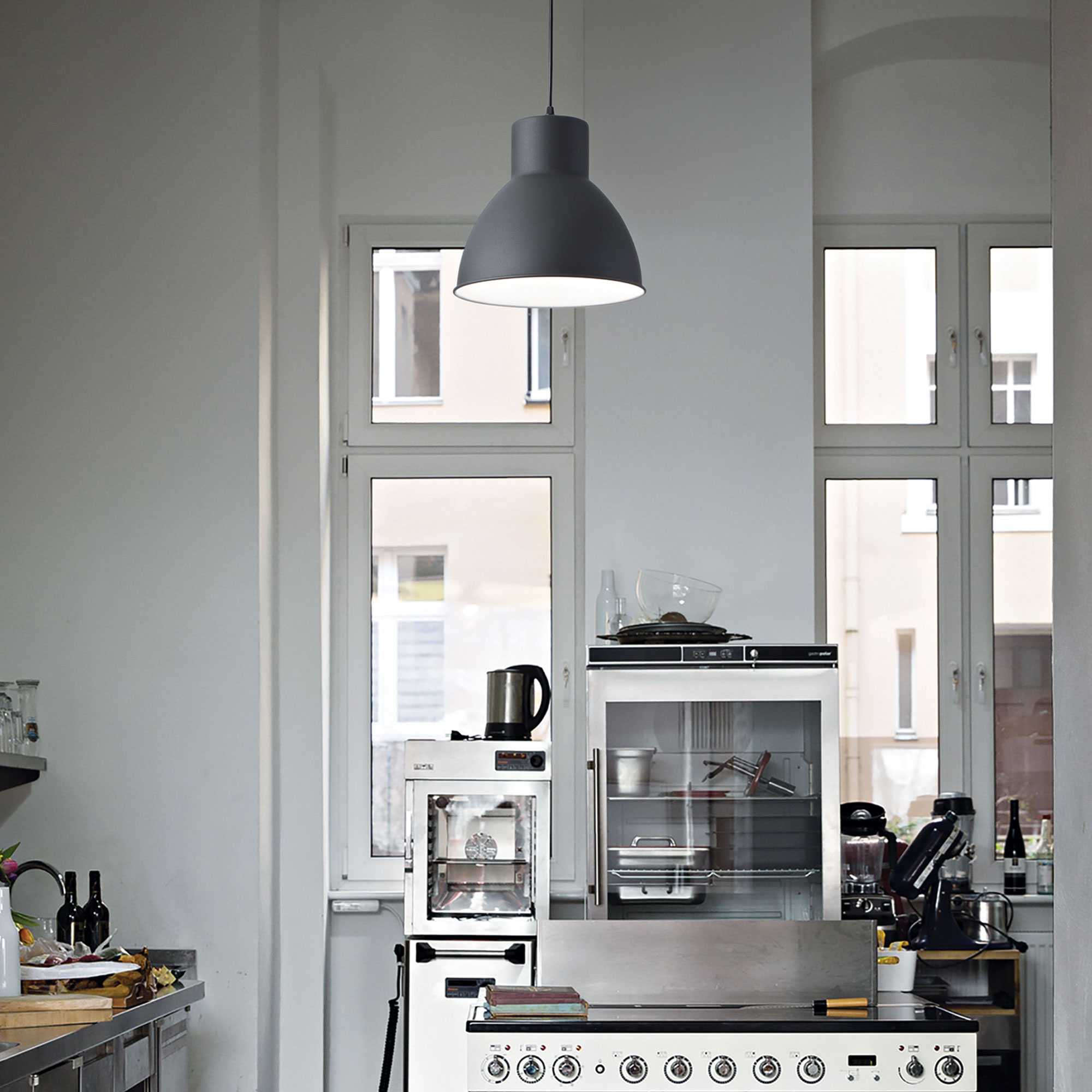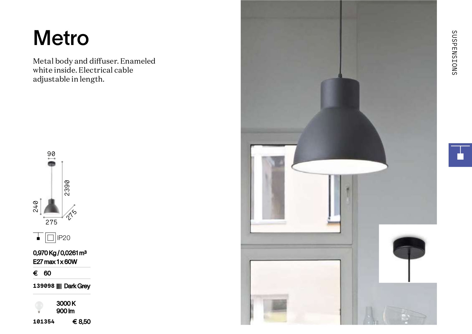 Стилът и естетиката на обстановката ще се обогатят благодарение, както на цялостната визия и дизайн на осветителното тяло, така и на вложените в изработката му, качествени материали, като: метал в цвят тъмно сиво отвън и емайлирано бял отвътре.