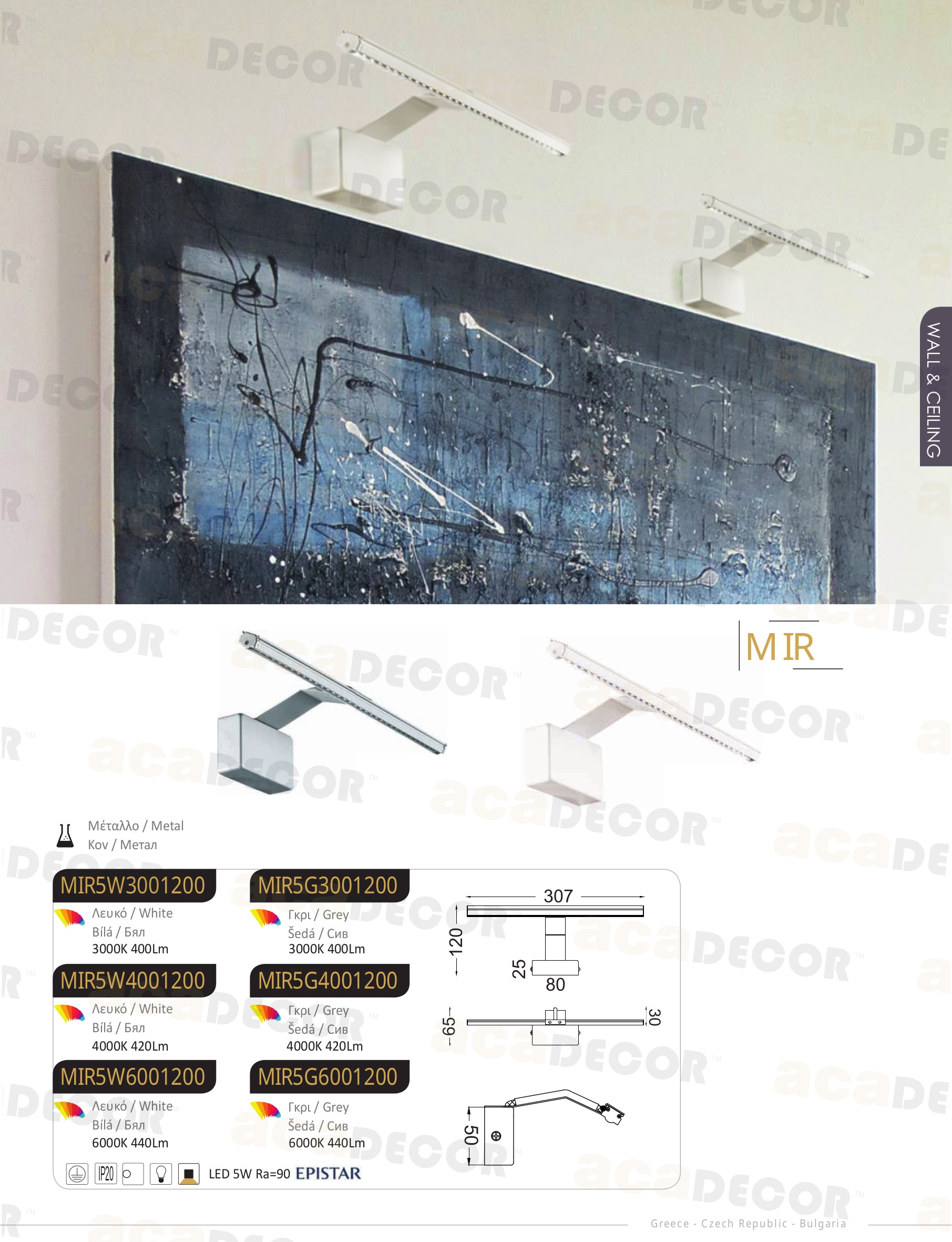 Осветителното тяло MIR5G30 ще осигури комфорт и естетика във всяко помещение, в което се постави. Цялостната визия и дизайн на лампата и вложените в изработката й материали, като метал в сив цвят, ще допринесат за един неповторим стил. Благодарение на дългогодишния опит, качествените материали и строгия контрол на качеството на изработка на производителя ACA-Lighting (Гърция), MIR5G30 е на високо европейско ниво.