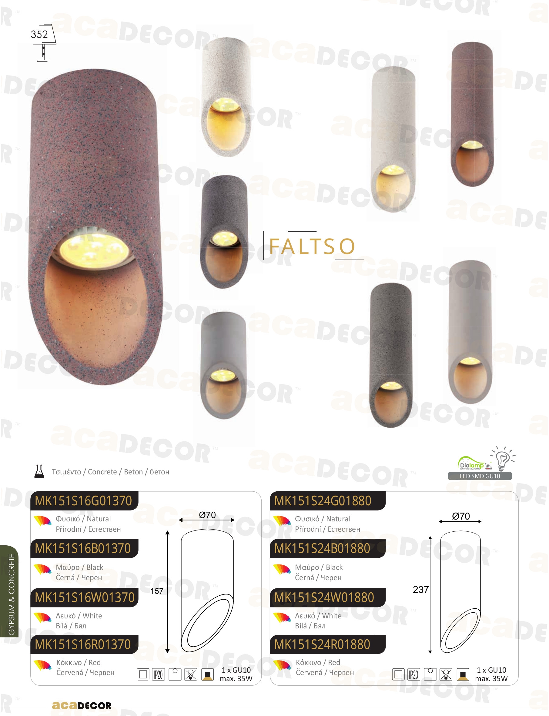 Ел. мощност 1 х 35 W Размери Ф7см x 15.7см Производител ACA-Lighting, Гърция