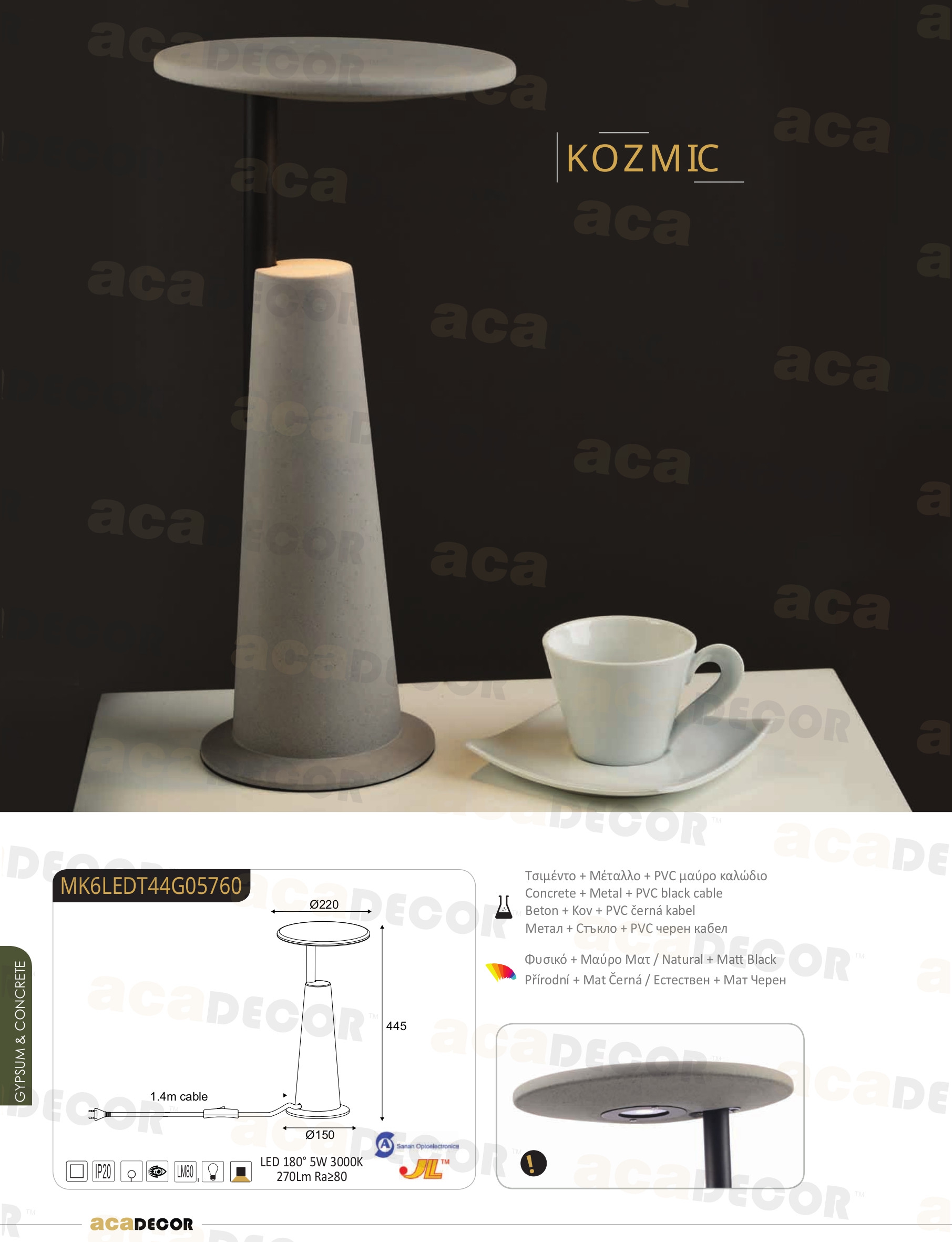 Стилът и естетиката на интериора ще се обогатят благодарение, както на цялостната визия, стил и дизайн на осветителното тяло, така и на вложените от производителя в изработката на MK6LEDT44G, качествени материали, като: цимент, метал в черен цвят, черен PVC кабел 1.4m, ключ ON/OFF.