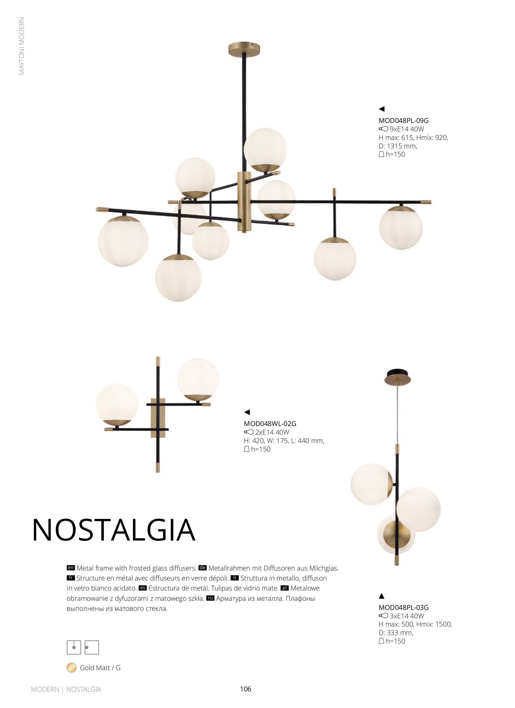 Ел. мощност 9 х 40 W Размери Ф131.5см x 58.6см x 92.8см Производител Maytoni, Германия