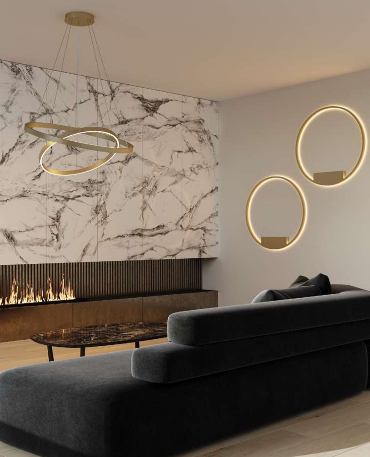 алуминий в цвят месинг, дифузер в матово бяло с индиректна, отразена светлина