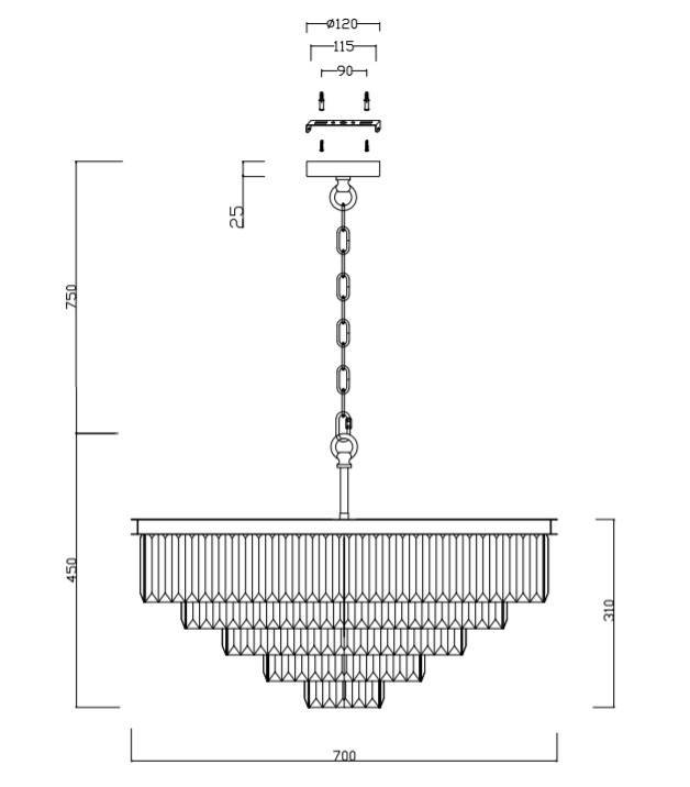 Ел. мощност 7 х 40 W Размери Ф50см x 40см x 45-115см Производител Maytoni, Германия