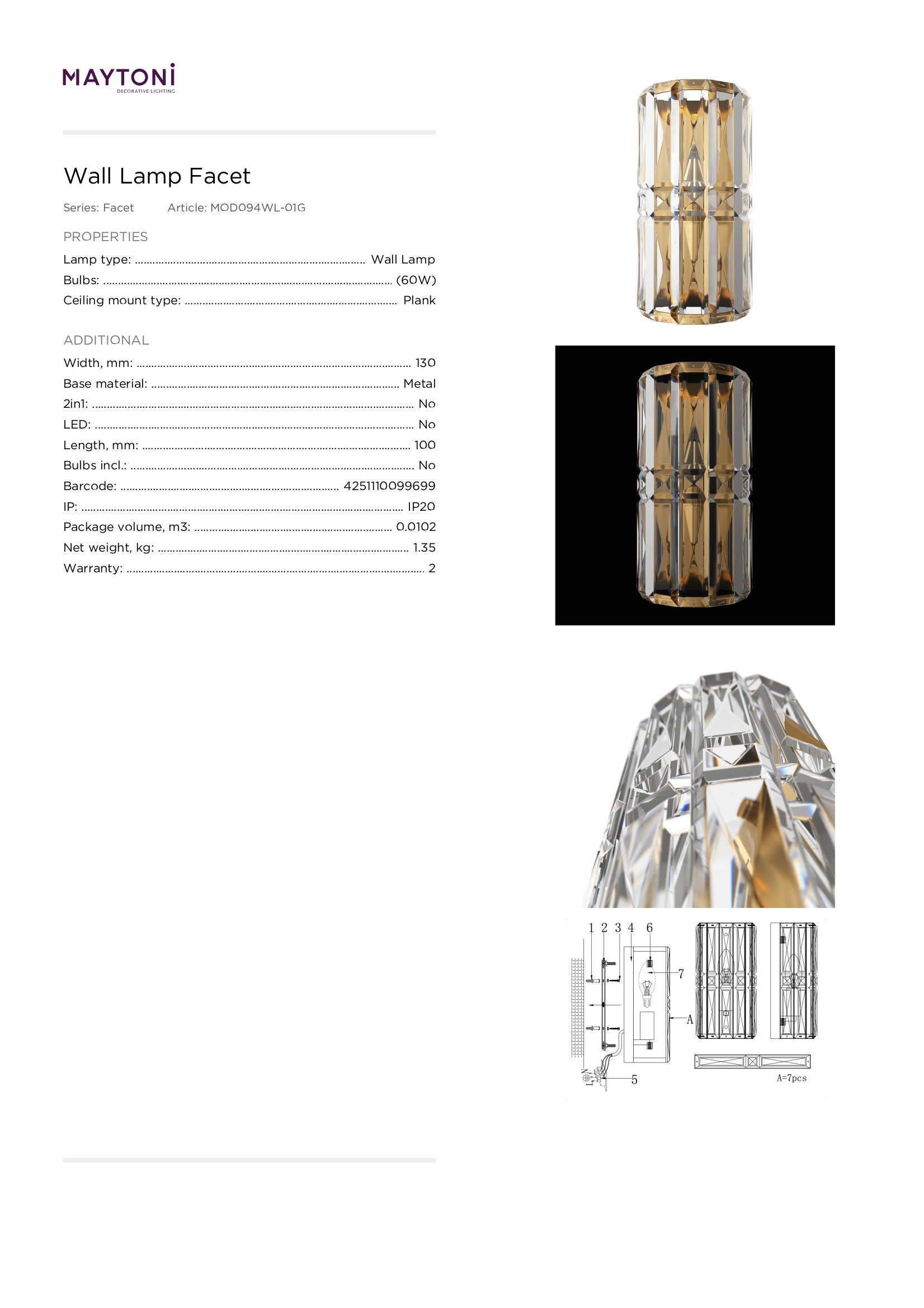Производителят Maytoni (Германия) има дългогодишен успешен опит в изработването на осветителни тела и всяко негово изделие е с високо европейско качество.