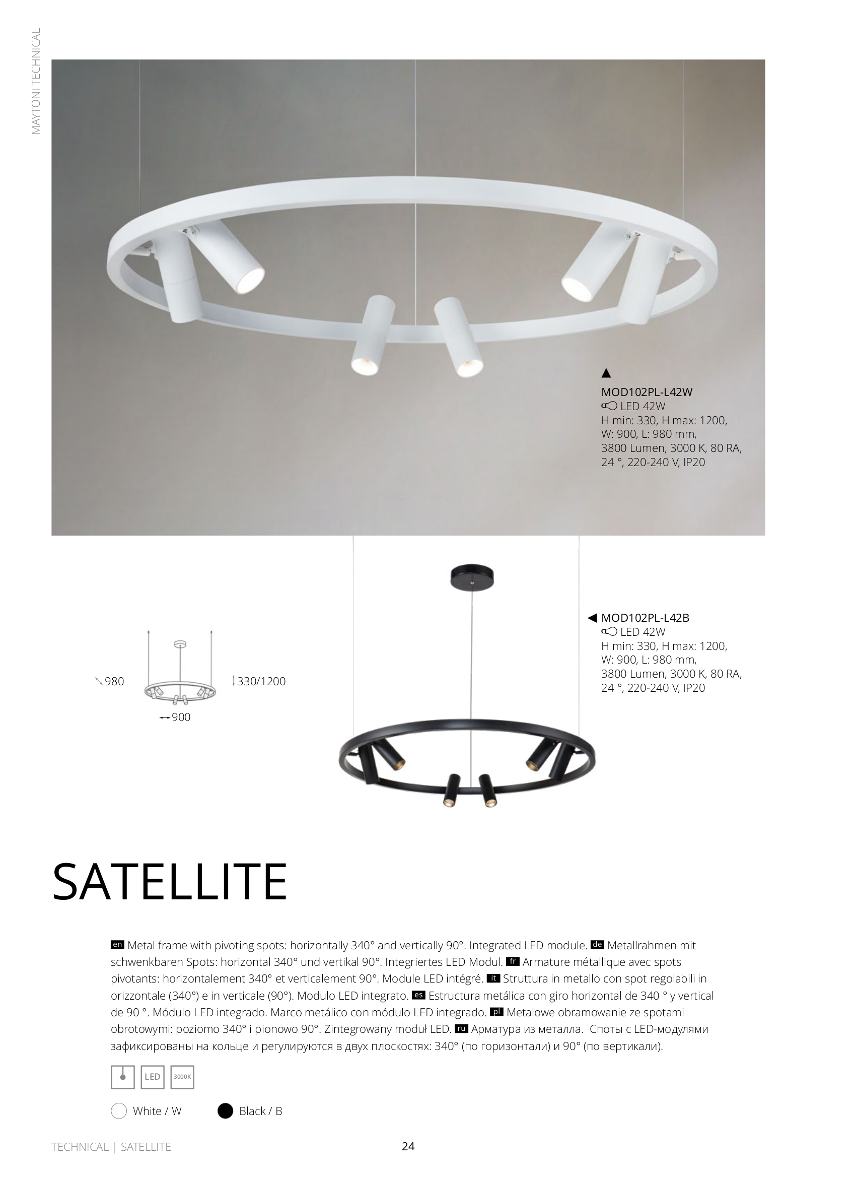 Осветителното тяло MOD102PL-L42W представлява полилей, спот лампа в съвременен стил. MOD102PL-L42W е от категорията осветителни тела и е подходящо за осветяване на различни помещения и пространства като: всекидневна / хол, спалня, кухня, трапезария, офис.