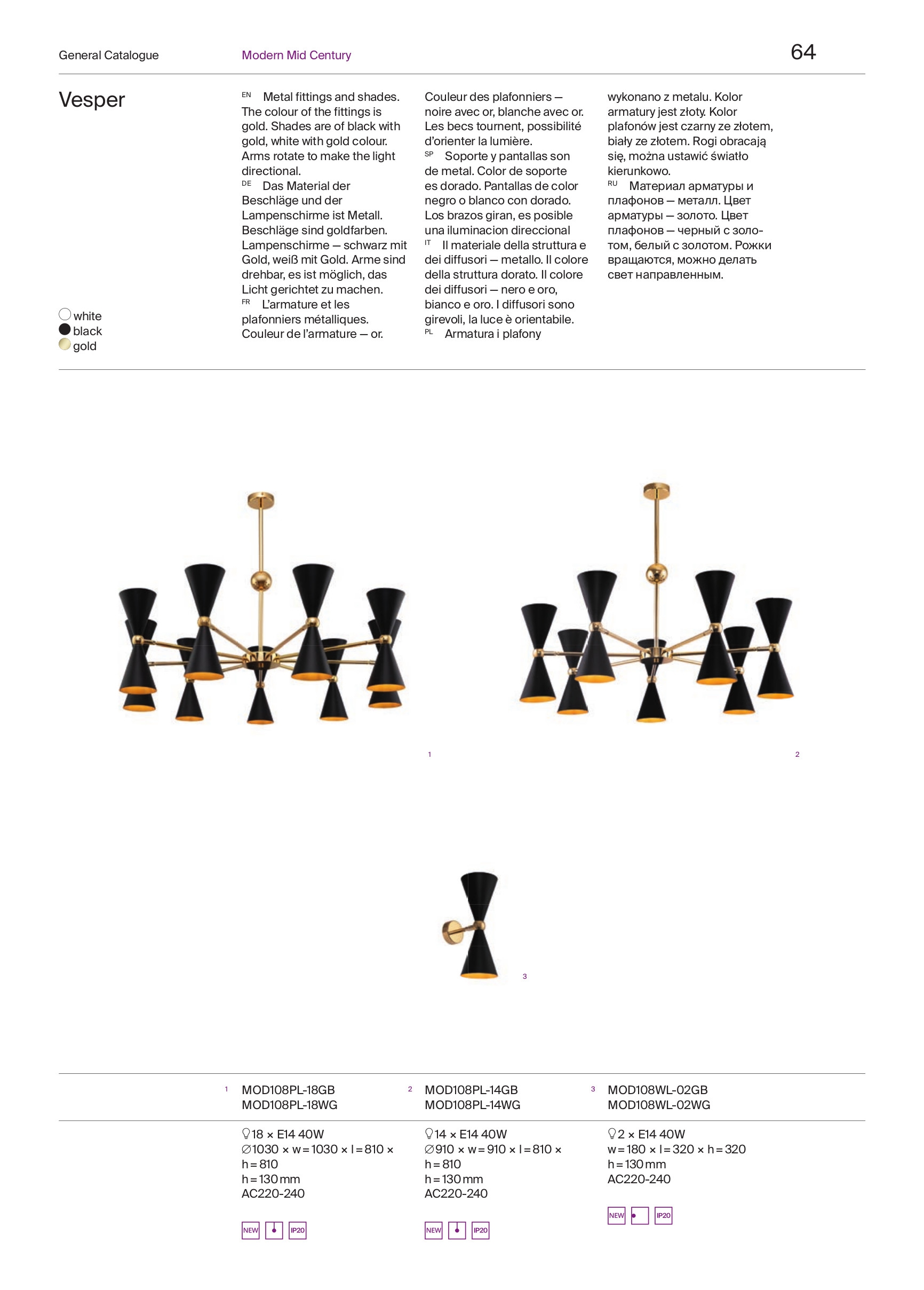 Осветителното тяло MOD108WL-02WG ще осигури комфорт и естетика във всяко помещение, в което се постави. Цялостната визия и дизайн на лампата и вложените в изработката й материали, като метал в цвят злато, метал в бяло и златно, конусите се въртят и може да се промени посоката на светене, ще допринесат за един неповторим стил. Благодарение на дългогодишния опит, качествените материали и строгия контрол на качеството на изработка на производителя Maytoni (Германия), MOD108WL-02WG е на високо европейско ниво.