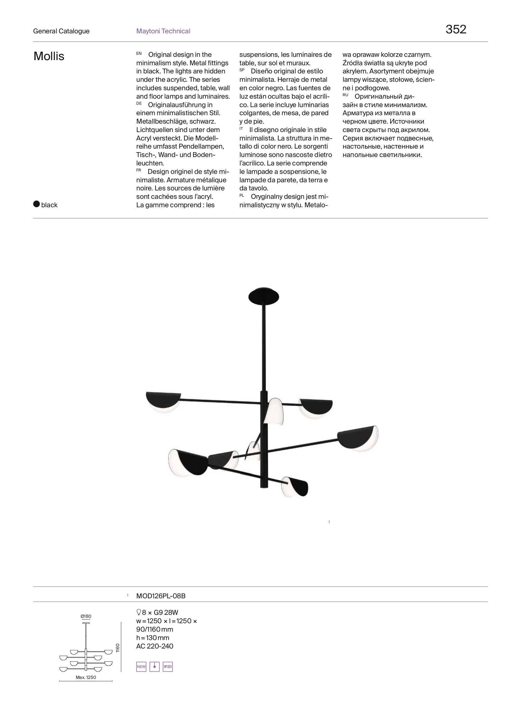 Ел. мощност 8 х 28 W Размери 125см x 116см x Ф18см Производител Maytoni, Германия