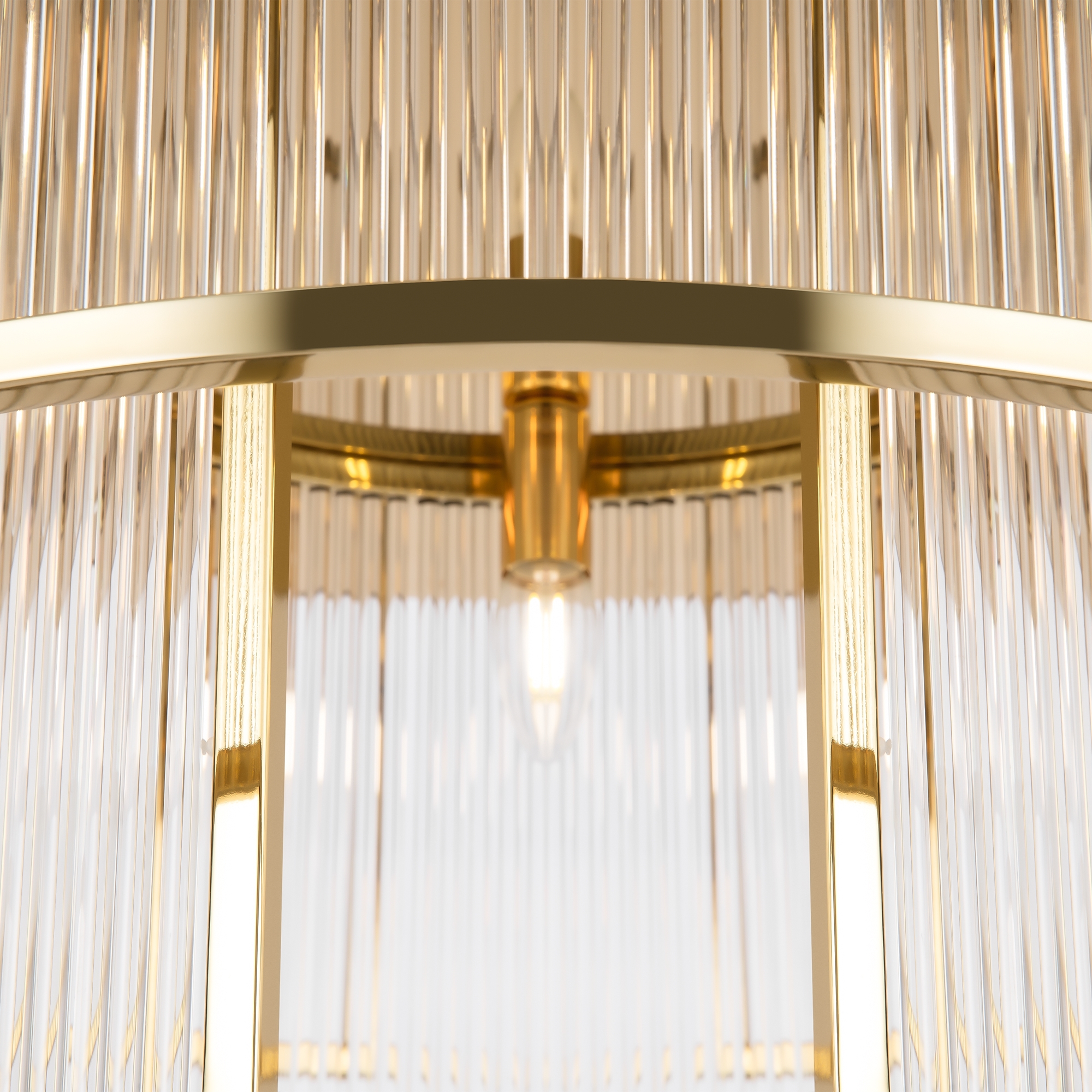 За стила и естетиката на интериора в изключително висока степен допринасят, както цялостната визия и дизайн на осветителното тяло, така и вложените в изработката висококачествени материали, като метал в цвят злато, дифузер от прозрачни релефни стъклени тръби.