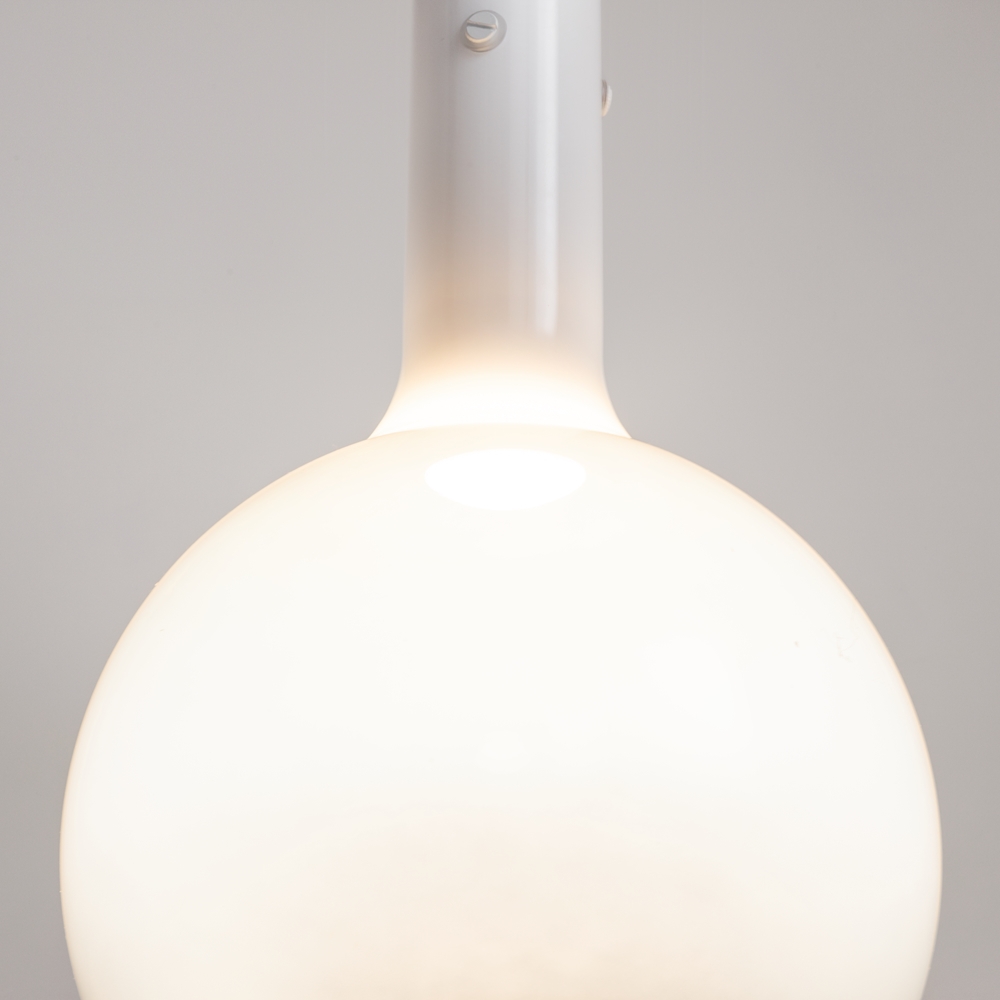 метал в бял цвят, сферично издухано стъкло с удължена цилиндрична основа в мъгливо бял цвят