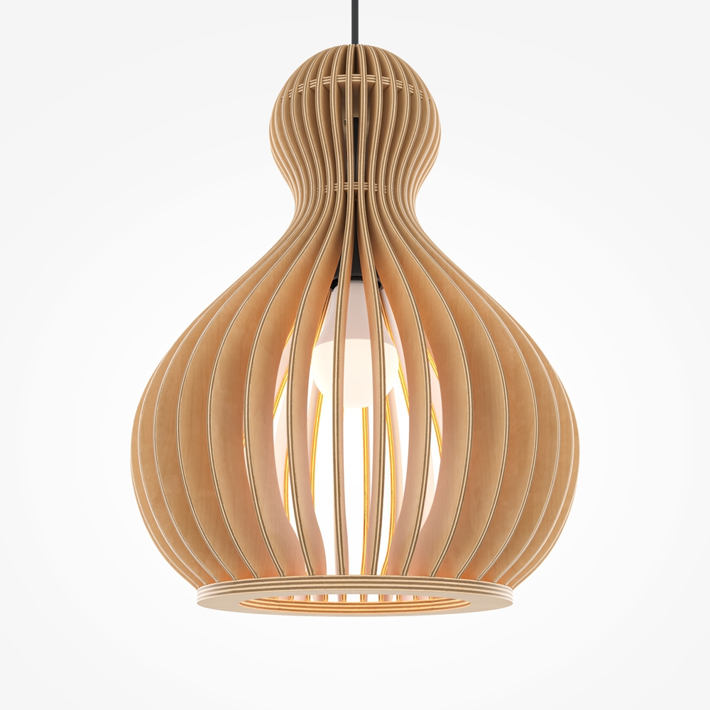 Стилът и естетиката на обстановката ще се обогатят благодарение, както на цялостната визия и дизайн на осветителното тяло, така и на вложените в изработката му, качествени материали, като: метал в черен цвят, абажур от дървени ламели.