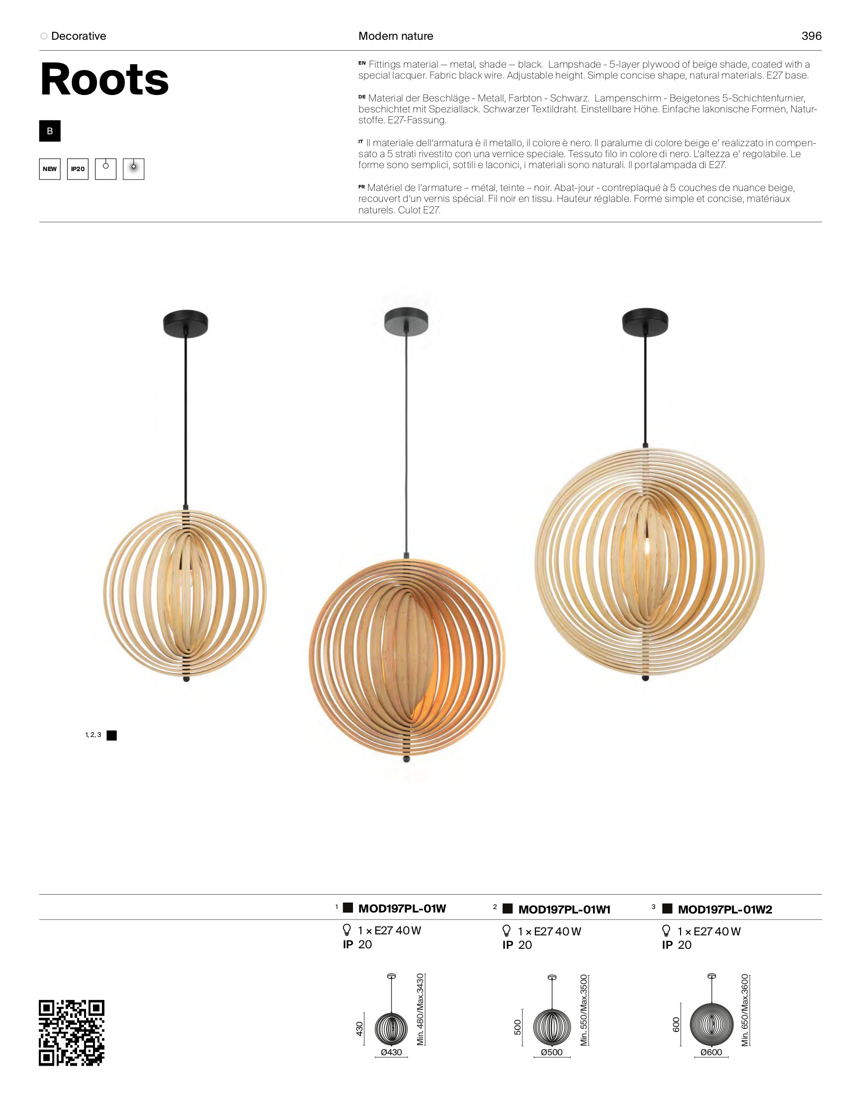 Стилът и естетиката на обстановката ще се обогатят благодарение, както на цялостната визия и дизайн на осветителното тяло, така и на вложените в изработката му, качествени материали, като: метал в черен цвят, шперплат покрит със специално лаково покритие, кабел с черна текстилна оплетка.