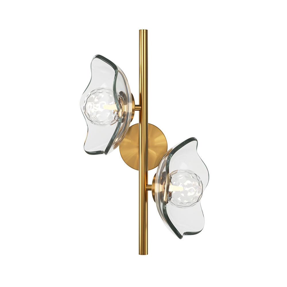 За стила и естетиката на обстановката допринасят, както цялостната визия и дизайн на осветителното тяло, така и вложените в изработката качествени материали, като: метал в цвят месинг, масивно декоративно прозрачно стъкло с форма на цвете, дифузер от масивно декоративно лято стъкло в кълбовидна форма.