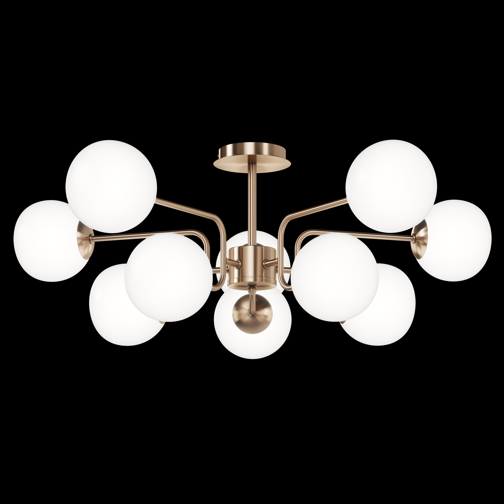 За стила и естетиката на интериора в изключително висока степен допринасят, както цялостната визия и дизайн на осветителното тяло, така и вложените в изработката висококачествени материали, като метал в цвят злато, издухано стъкло в млечно бял цвят.