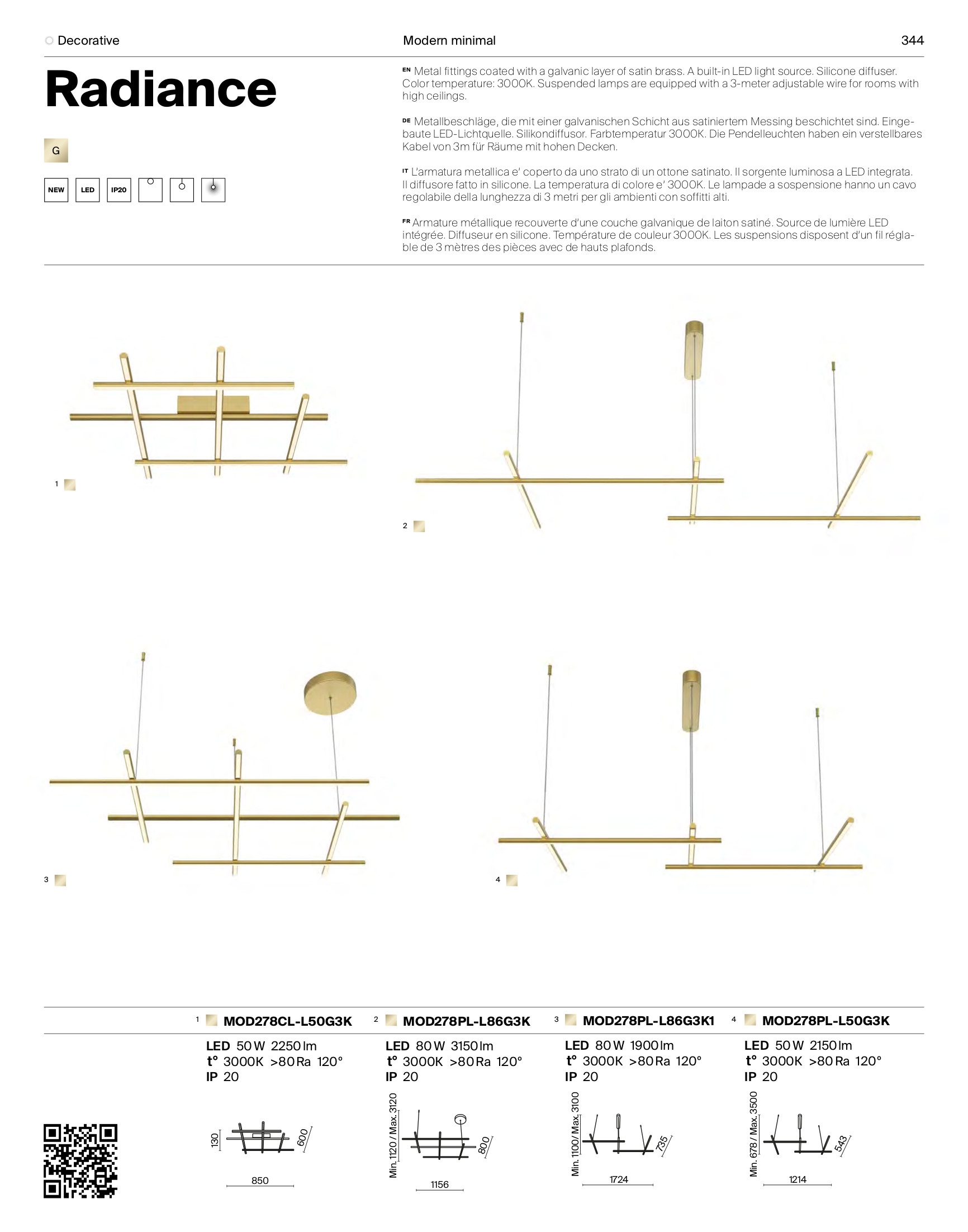 Осветителното тяло MOD278PL-L86G3K представлява лед полилей в съвременен стил. MOD278PL-L86G3K е от категорията и е подходящо за осветяване на различни помещения и пространства като: всекидневна / хол, спалня, кухня, трапезария, офис.