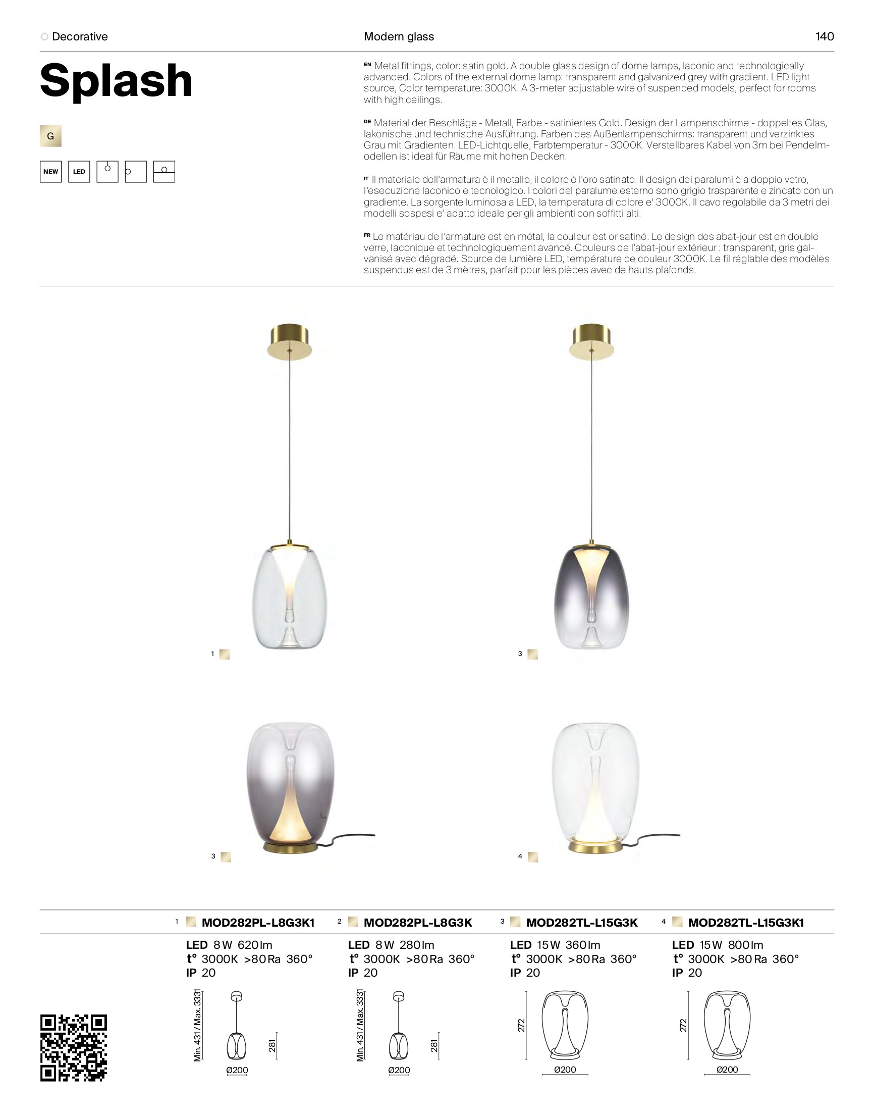 Осветителното тяло MOD282PL-L8G3K ще осигури комфорт и естетика във всяко помещение, в което се постави. Цялостната визия и дизайн на лампата и вложените в изработката й материали, като метал в цвят злато, прозрачно, опушено с градиент, двойно стъкло, ще допринесат за един неповторим стил. Благодарение на дългогодишния опит, качествените материали и строгия контрол на качеството на изработка на производителя Maytoni (Германия), MOD282PL-L8G3K е на високо европейско ниво.