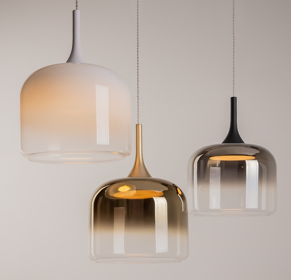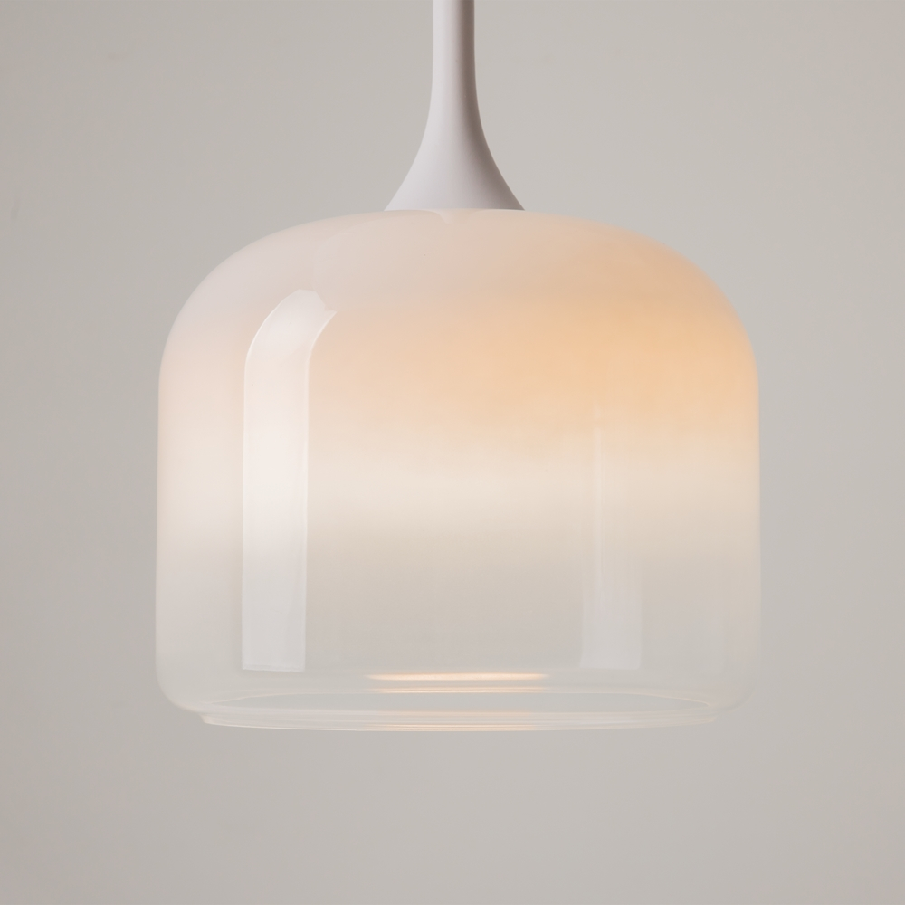 отлято стъкло градиентно нюансирано с бял цвят, метална розетка в бяло