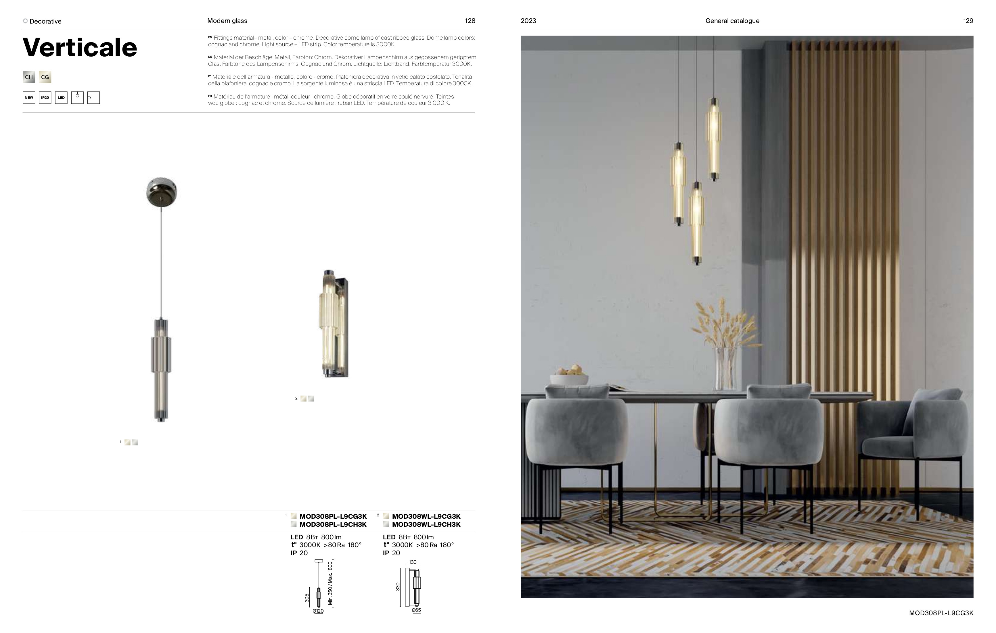Лед пендел MOD308PL-L9CG3K ще осигури комфорт и естетика във всяко помещение, в което се постави. Цялостната визия и дизайн на led лампата и вложените в изработката й материали, като хромиран метал, отлято релефно стъкло в цвят коняк, ще допринесат за един неповторим стил. Благодарение на дългогодишния опит в производството на лед осветление, качествените материали и строгия контрол на качеството на изработка на производителя Maytoni (Германия), MOD308PL-L9CG3K е на високо европейско ниво.
