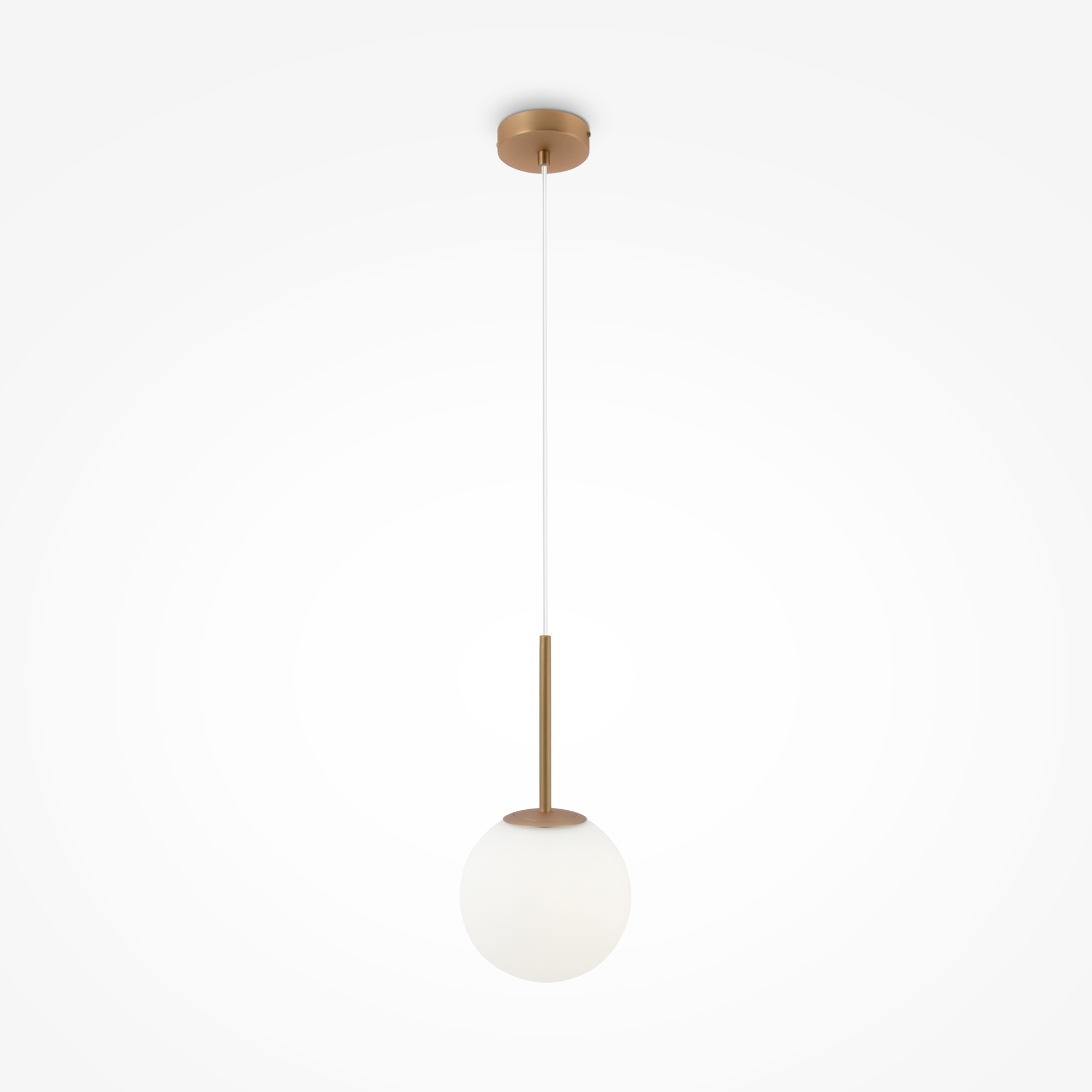 Стилът и естетиката на обстановката ще се обогатят благодарение, както на цялостната визия и дизайн на осветителното тяло, така и на вложените в изработката му, качествени материали, като: метал в цвят злато, сферично матирано бяло стъкло, прозрачен захранващ кабел.