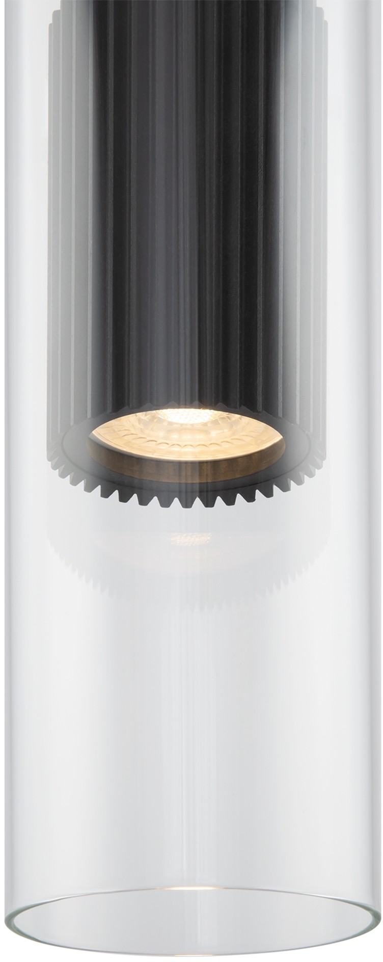 алуминий в цвят черен мат, декоративен елемнт с цилиндрична форма от прозрачно стъкло
