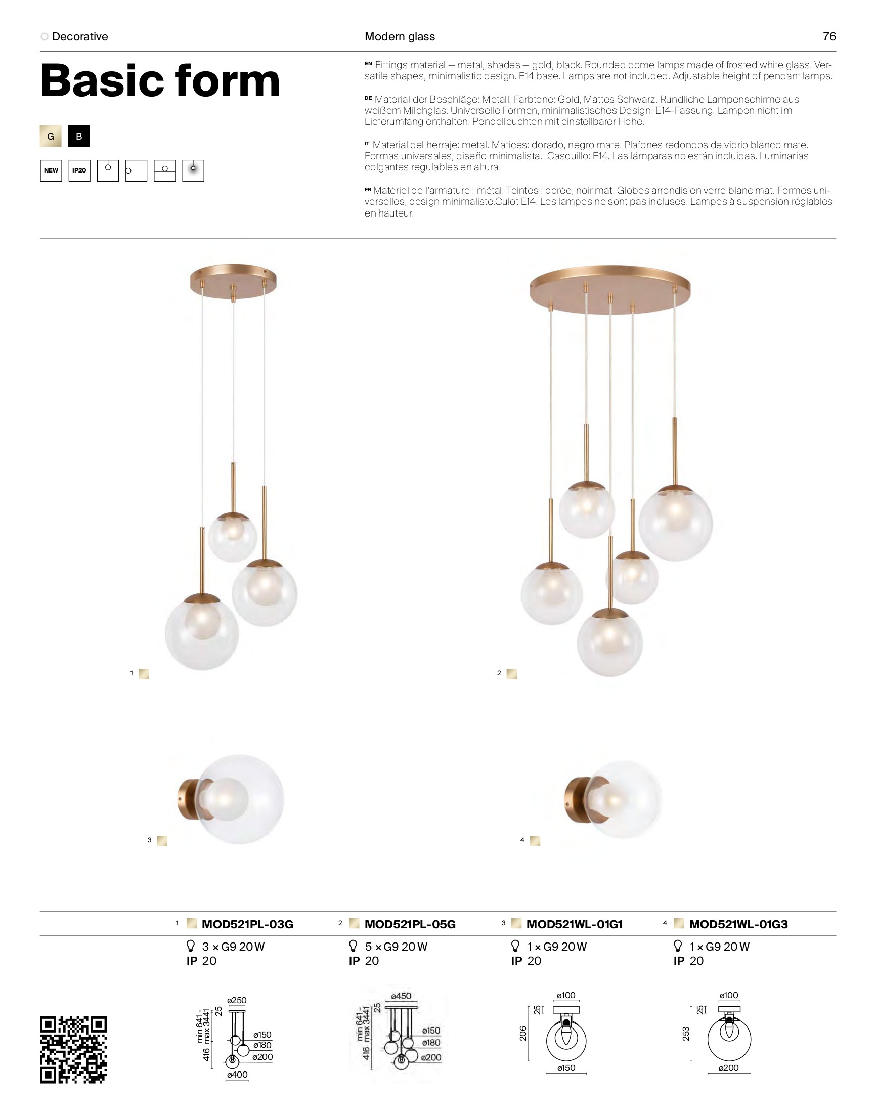 Осветителното тяло MOD521PL-05G ще осигури комфорт и естетика във всяко помещение, в което се постави. Цялостната визия и дизайн на лампата и вложените в изработката й материали, като метал в цвят златен мат, матово бял вътрешен разсейнвател и прозрачен "заскрежен" сферичен външен разсейвател, ще допринесат за един неповторим стил. Благодарение на дългогодишния опит, качествените материали и строгия контрол на качеството на изработка на производителя Maytoni (Германия), MOD521PL-05G е на високо европейско ниво.