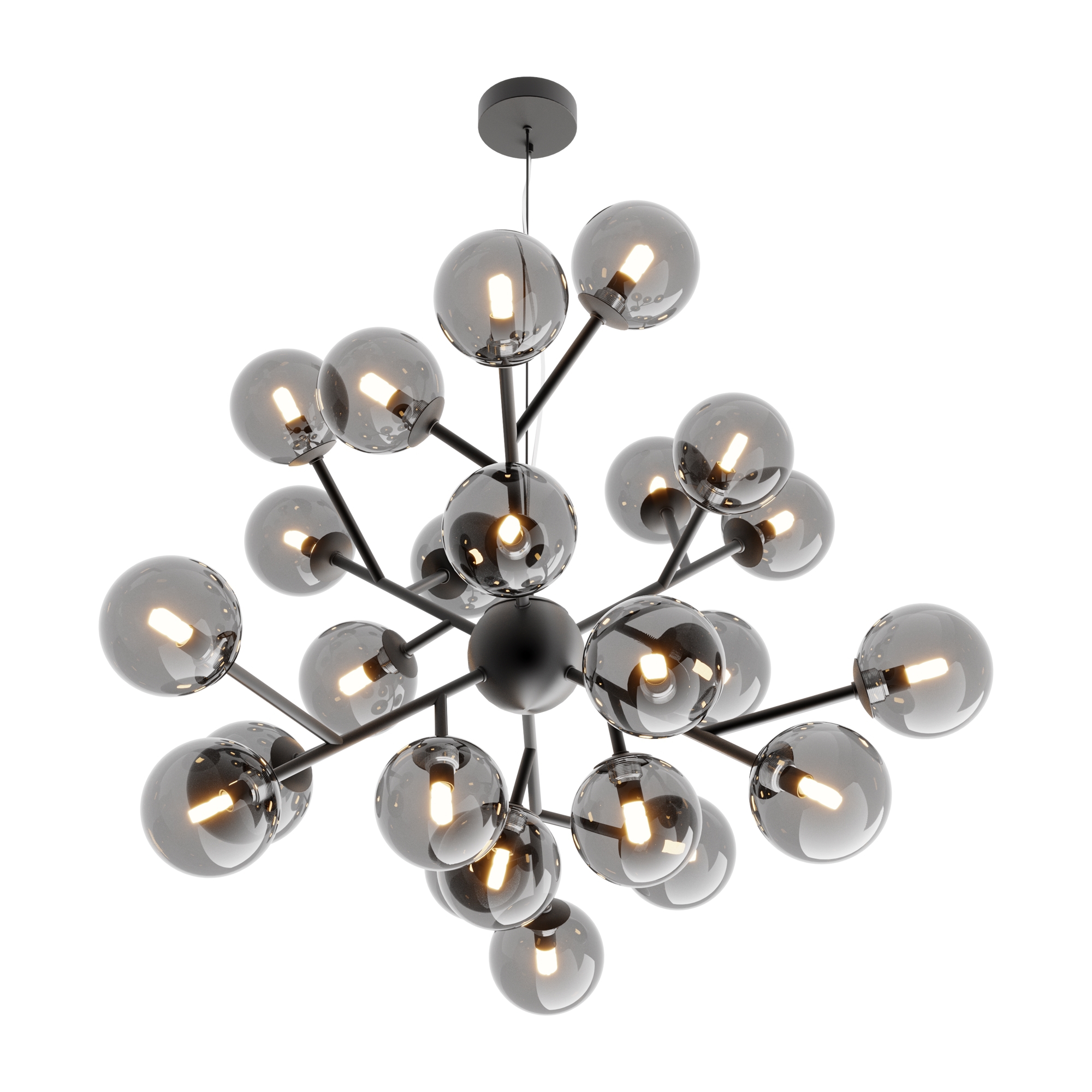 За стила и естетиката на интериора допринасят, както цялостната визия и дизайн на осветителното тяло, така и вложените от производителя в изработката висококачествени материали, като тяло от метал в черен цвят, кръгли дифузьори от опушено стъкло, дизайн наподобяващ молекула.