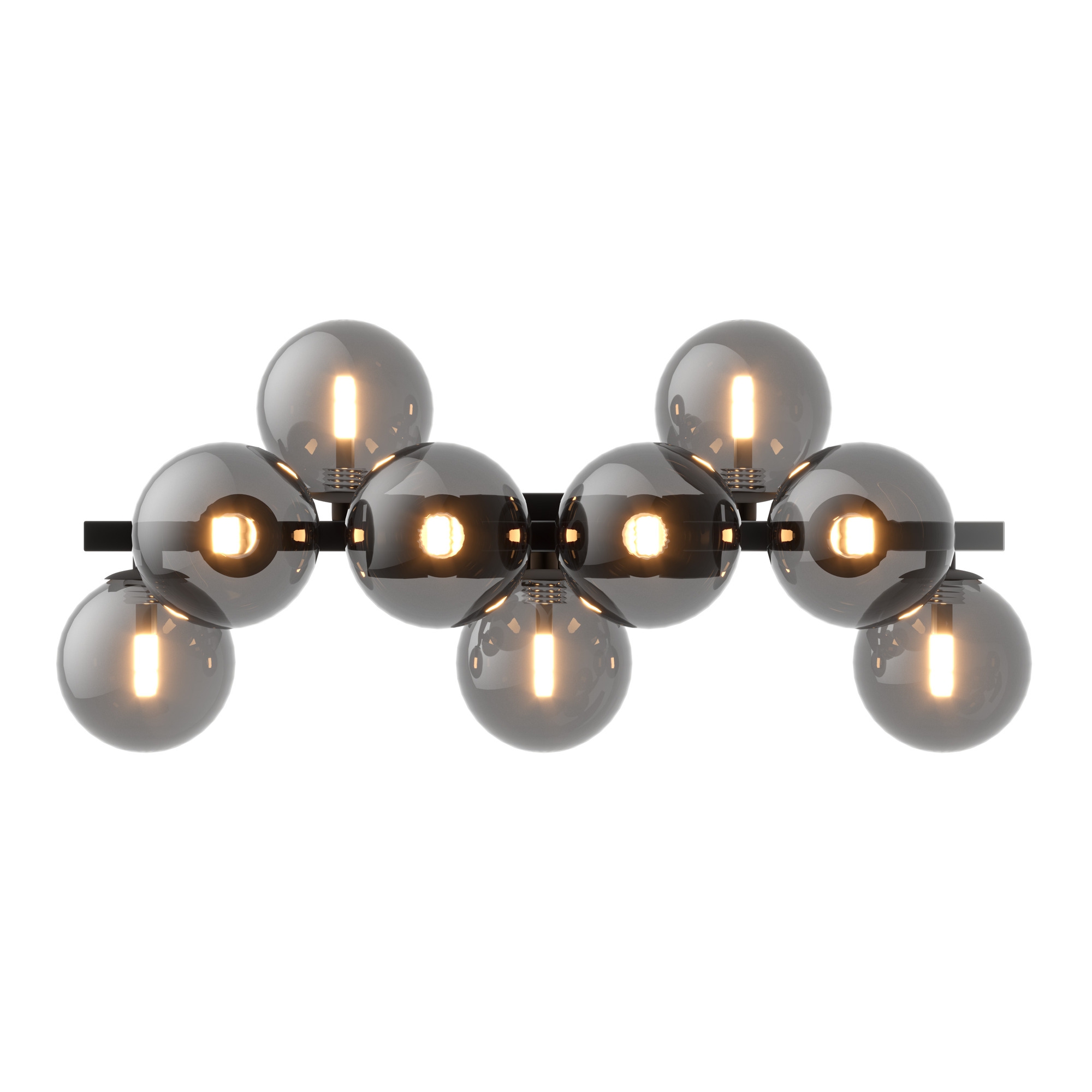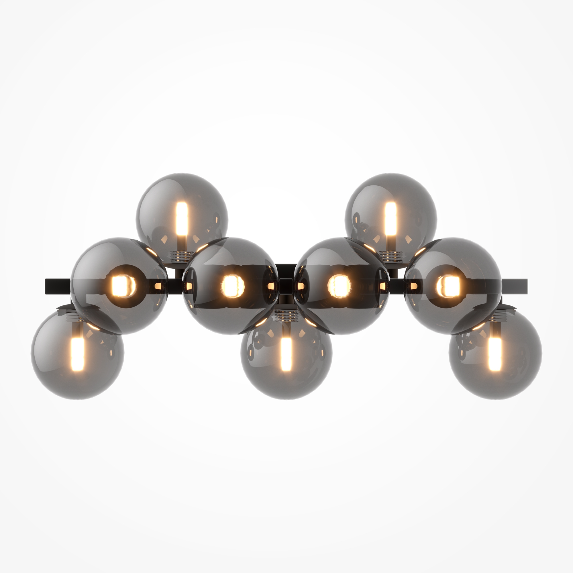 За стила и естетиката на обстановката допринасят, както цялостната визия и дизайн на осветителното тяло, така и вложените в изработката качествени материали, като: тяло от метал в черен цвят, кръгли дифузьори от опушено стъкло, дизайн наподобяващ молекула.