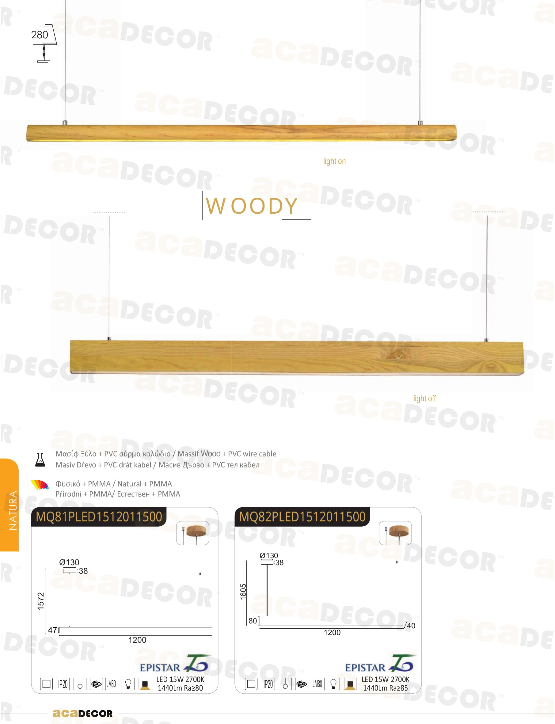Осветителното тяло MQ81PLED15120 ще осигури комфорт и естетика във всяко помещение, в което се постави. Цялостната визия и дизайн на лампата и вложените в изработката й материали, като масивно дърво в естествен цвят, дифузер от полимер в бял цвят, ще допринесат за един неповторим стил. Благодарение на дългогодишния опит, качествените материали и строгия контрол на качеството на изработка на производителя ACA-Lighting (Гърция), MQ81PLED15120 е на високо европейско ниво.