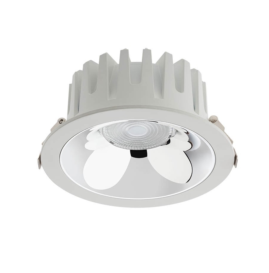 корпус от отлят алуминий в матово бял цвят, рефлектор от полимер (РММА) с висок гланц, разсейвател на светлината от призматичен поликарбонат