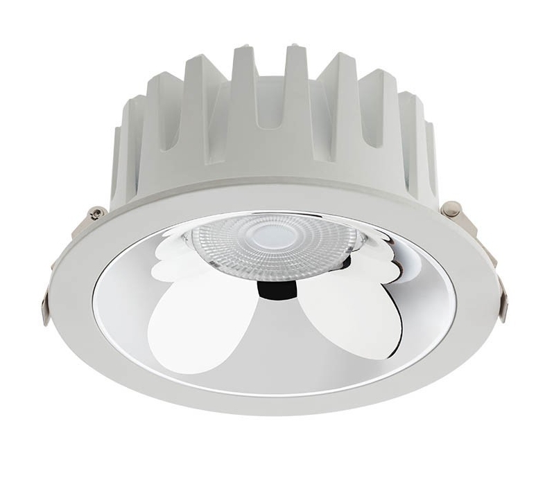 корпус от отлят алуминий в матово бял цвят, рефлектор от полимер (РММА) с висок гланц, разсейвател на светлината от призматичен поликарбонат