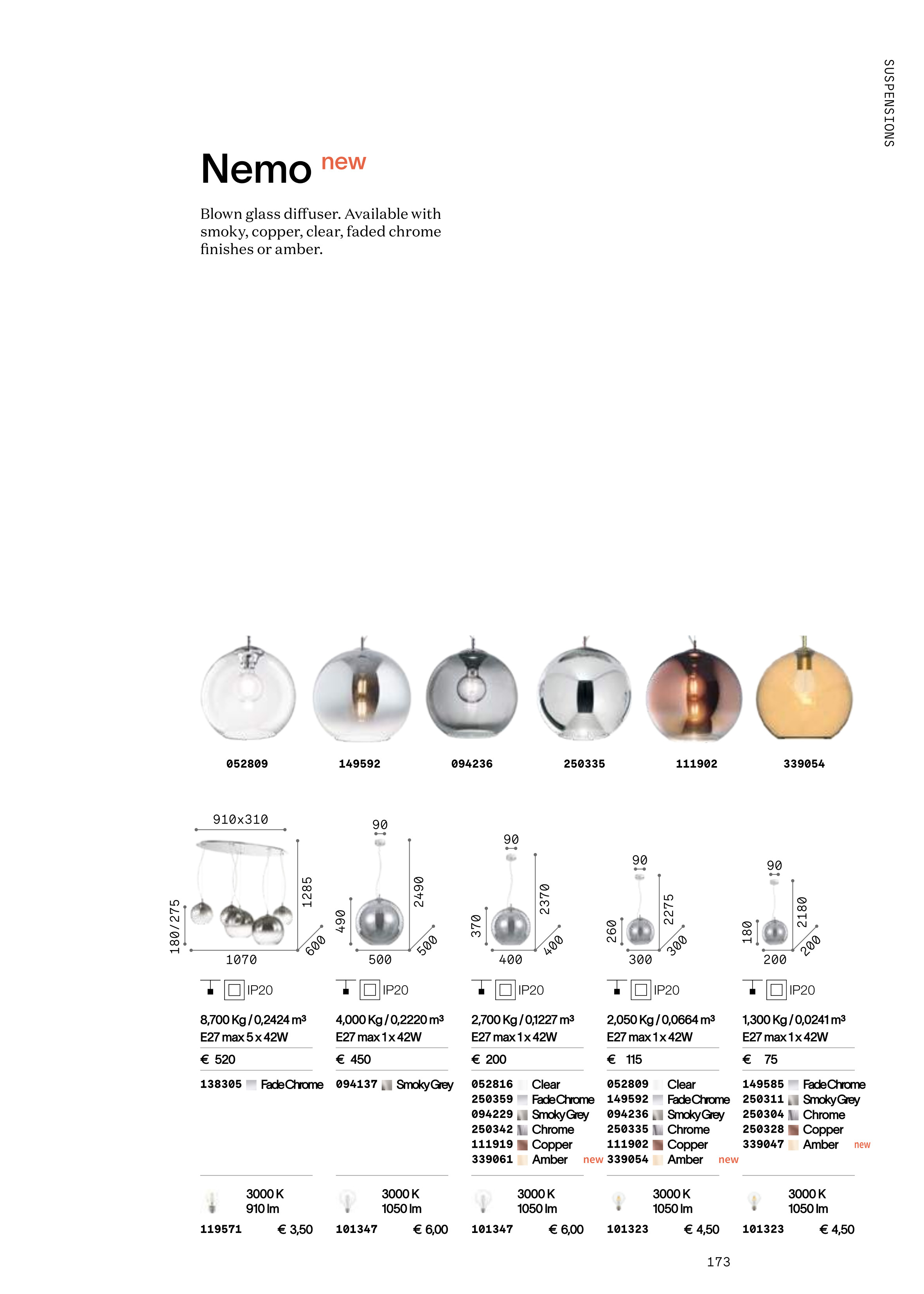 Магазини за осветителни тела ОРИОН представят осветителното тяло NEMO SP1 D30 AMBRA, което представлява пендел, създадено в съвременен стил. Като елемент от категорията това осветително тяло е подходящо за различни помещения и пространства във Вашия дом или офис, като е изключително подходящо например за всекидневна / хол, спалня, кухня, трапезария, коридор, антре, офис.