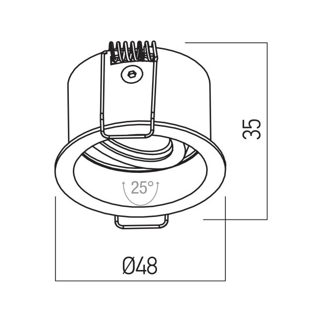 отлят алуминий с електростатично нанесено покритие в пясъчно бяло, леща от полимер (РММА) насочваща се светлина под ъгъл до 25°, драйвърът се закупува отделно