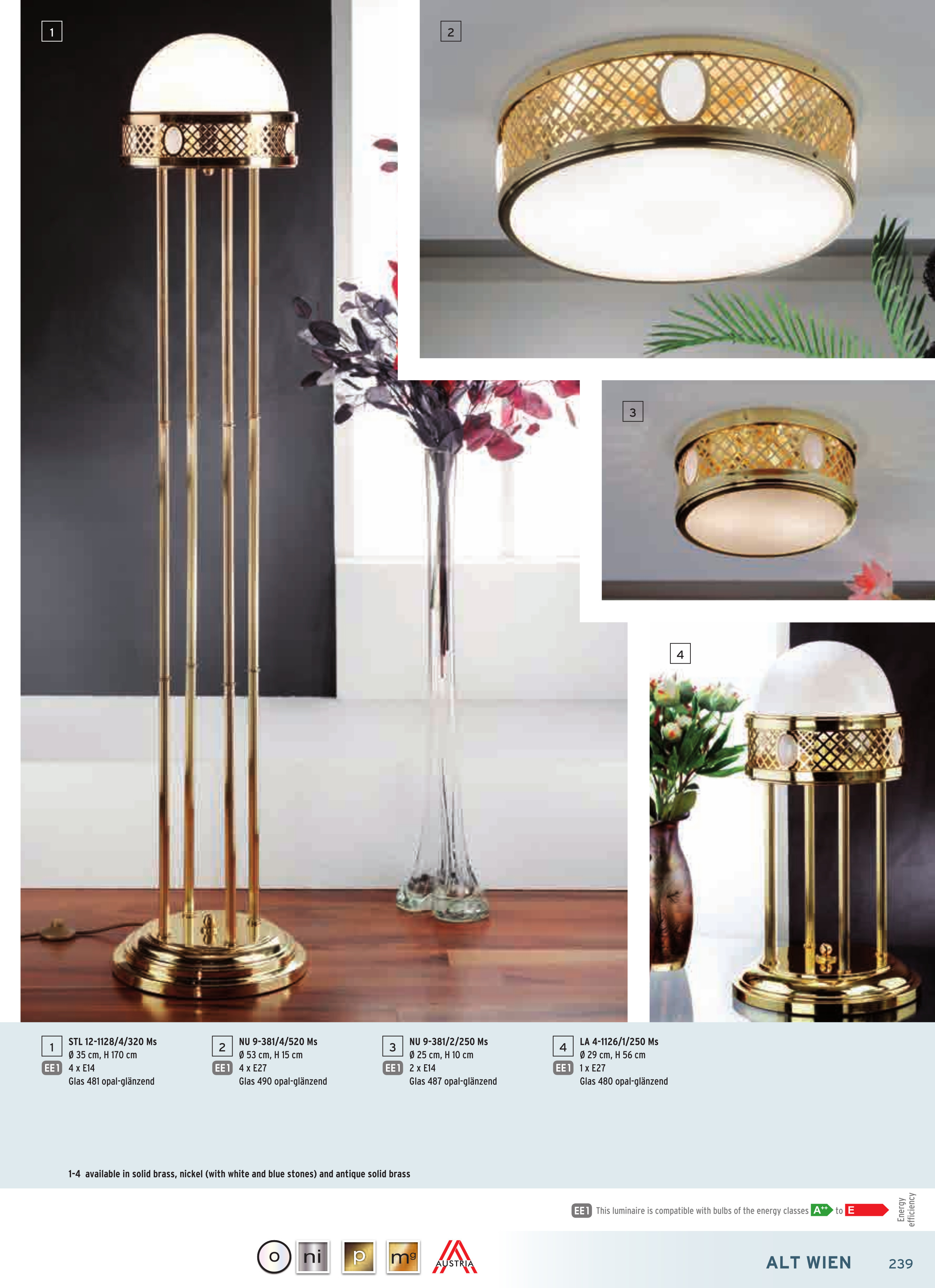 За стила и естетиката на обстановката допринасят, както цялостната визия и дизайн на осветителното тяло, така и вложените в изработката качествени материали, като: стомана с покритие от блестящ месинг, стъкло в цвят блестящ опал.