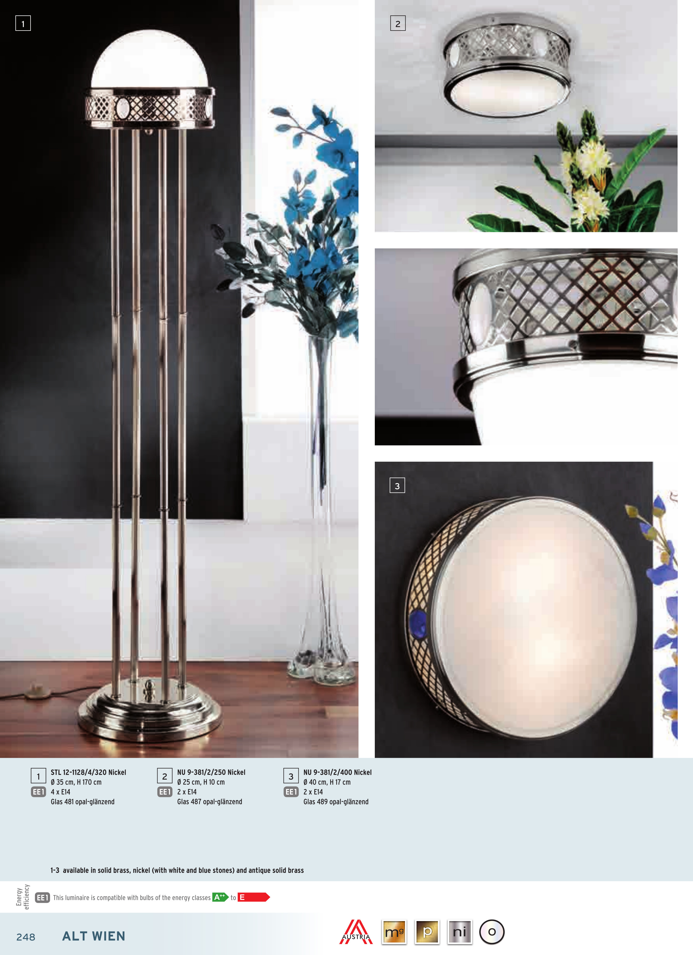 За стила и естетиката на обстановката допринасят, както цялостната визия и дизайн на осветителното тяло, така и вложените в изработката качествени материали, като: масивен месинг с покритие от блестящ никел, стъкло в цвят лъскав опал.