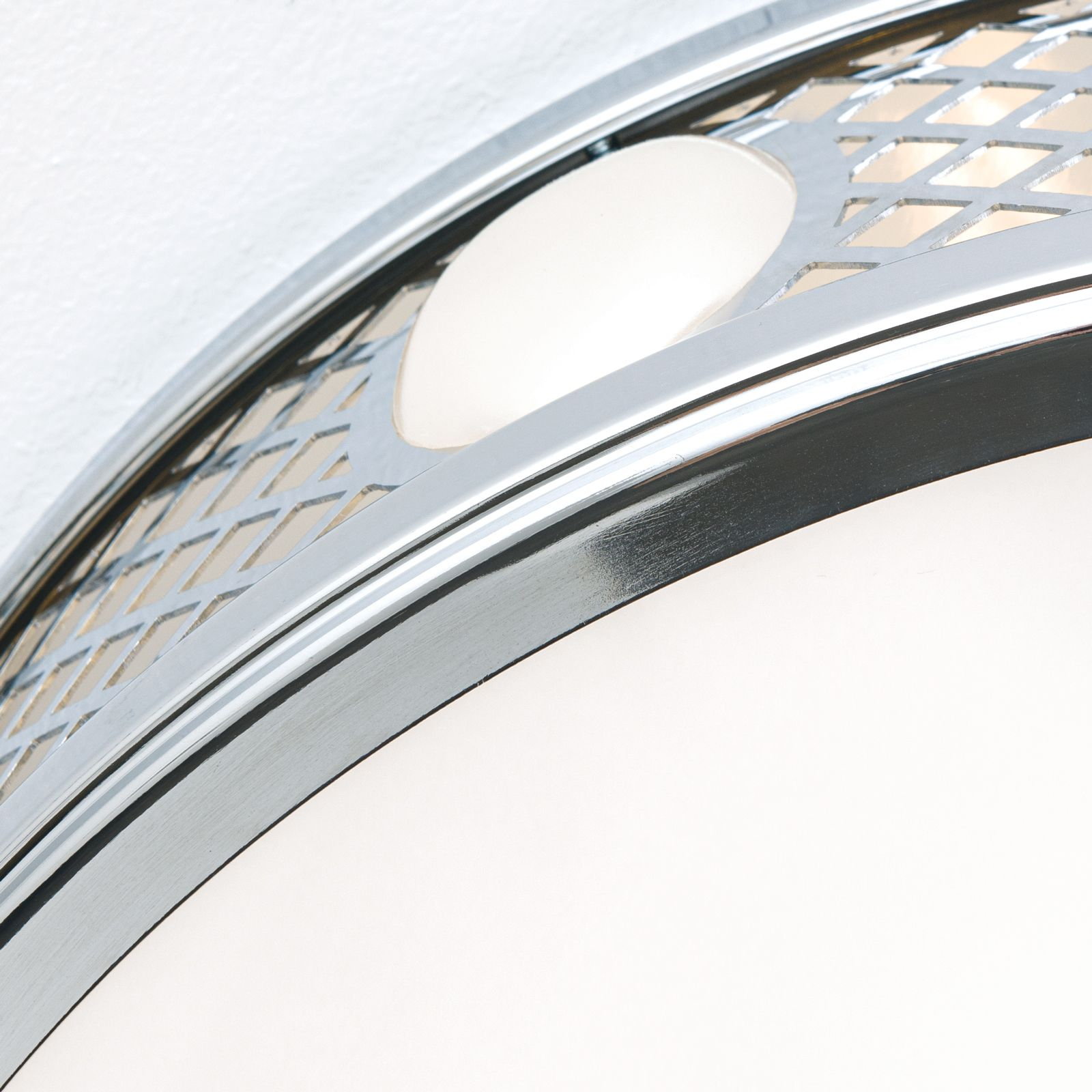 масивен месинг с покритие от блестящ никел, стъкло в цвят лъскав опал
