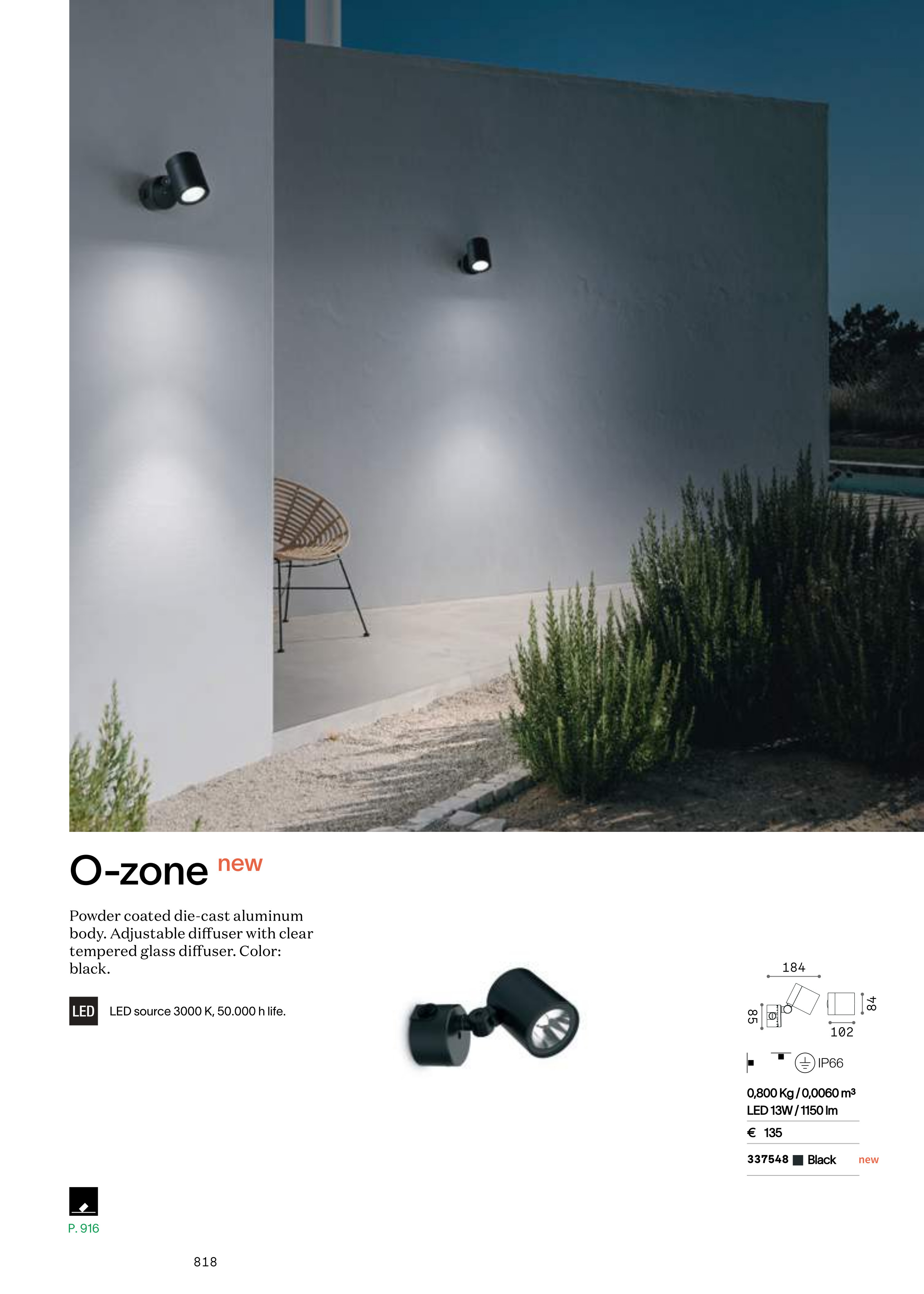 Осветителното тяло O-ZONE AP ще осигури комфорт и естетика във всяко помещение, в което се постави. Цялостната визия и дизайн на лампата и вложените в изработката й материали, като отлят алуминий с прахово нанесено покритие в черен цвят, регулируем дифузьор с прозрачно закалено стъкло, ще допринесат за един неповторим стил. Благодарение на дългогодишния опит, качествените материали и строгия контрол на качеството на изработка на производителя Ideal-Lux (Италия), O-ZONE AP е на високо европейско ниво.