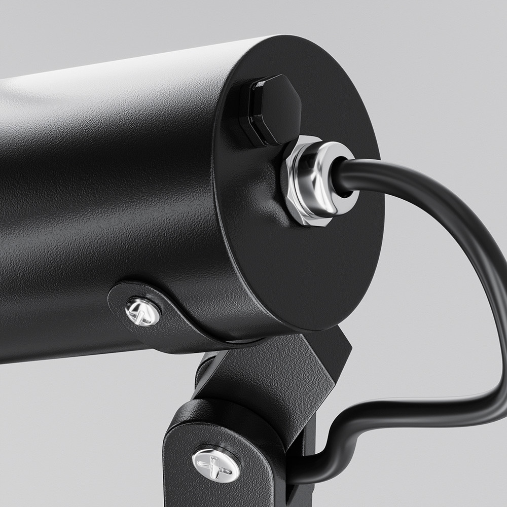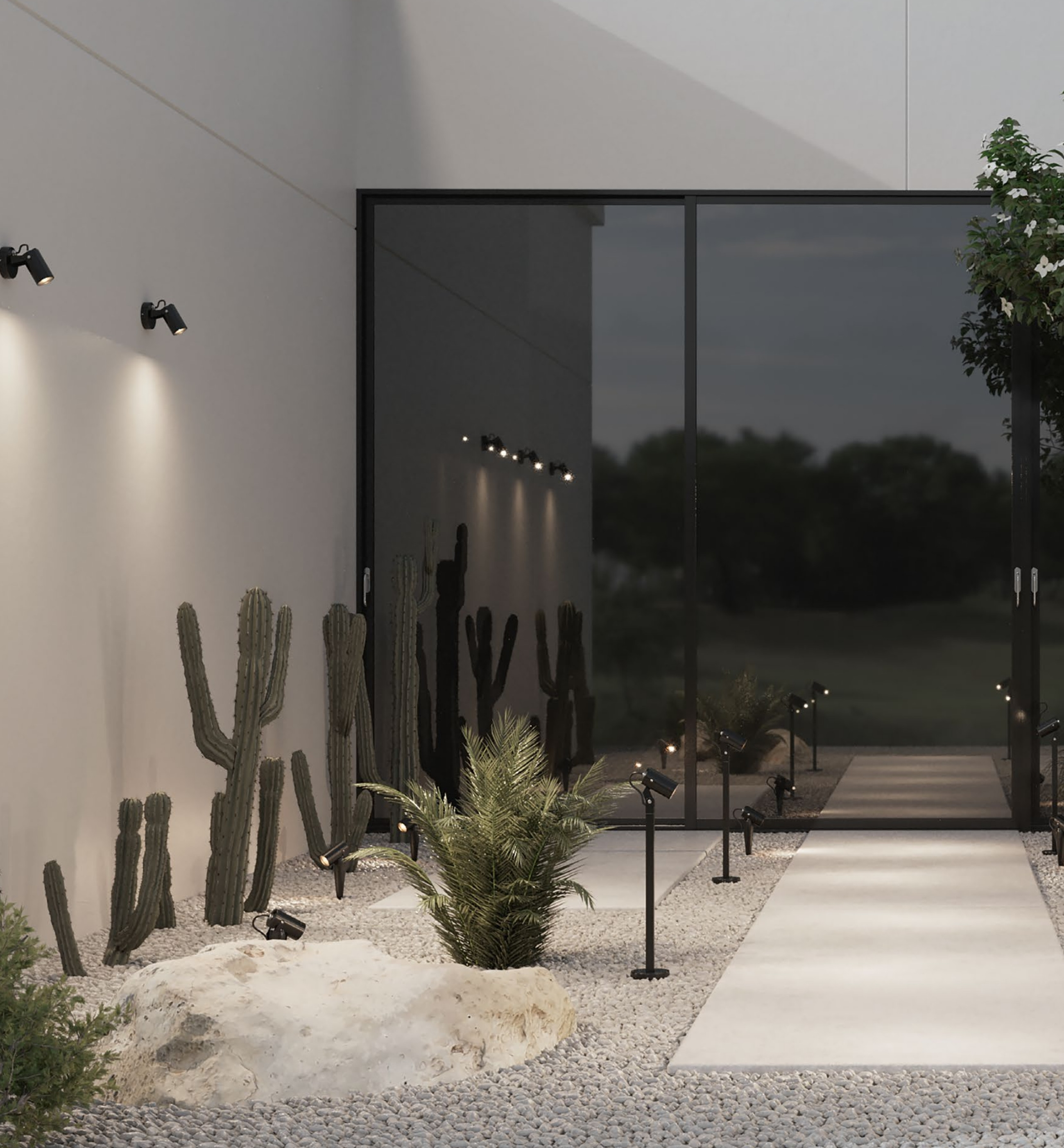За стила, хармонията и естетиката на обстановката допринасят, както цялостната визия и дизайн на осветителното тяло, така и вложените в изработката му качествени материали, като: алуминий в черен цвят, устойчив на температурни изменения и корозия, посоката на светлината се регулира в хоризонтално и вертикално направление.