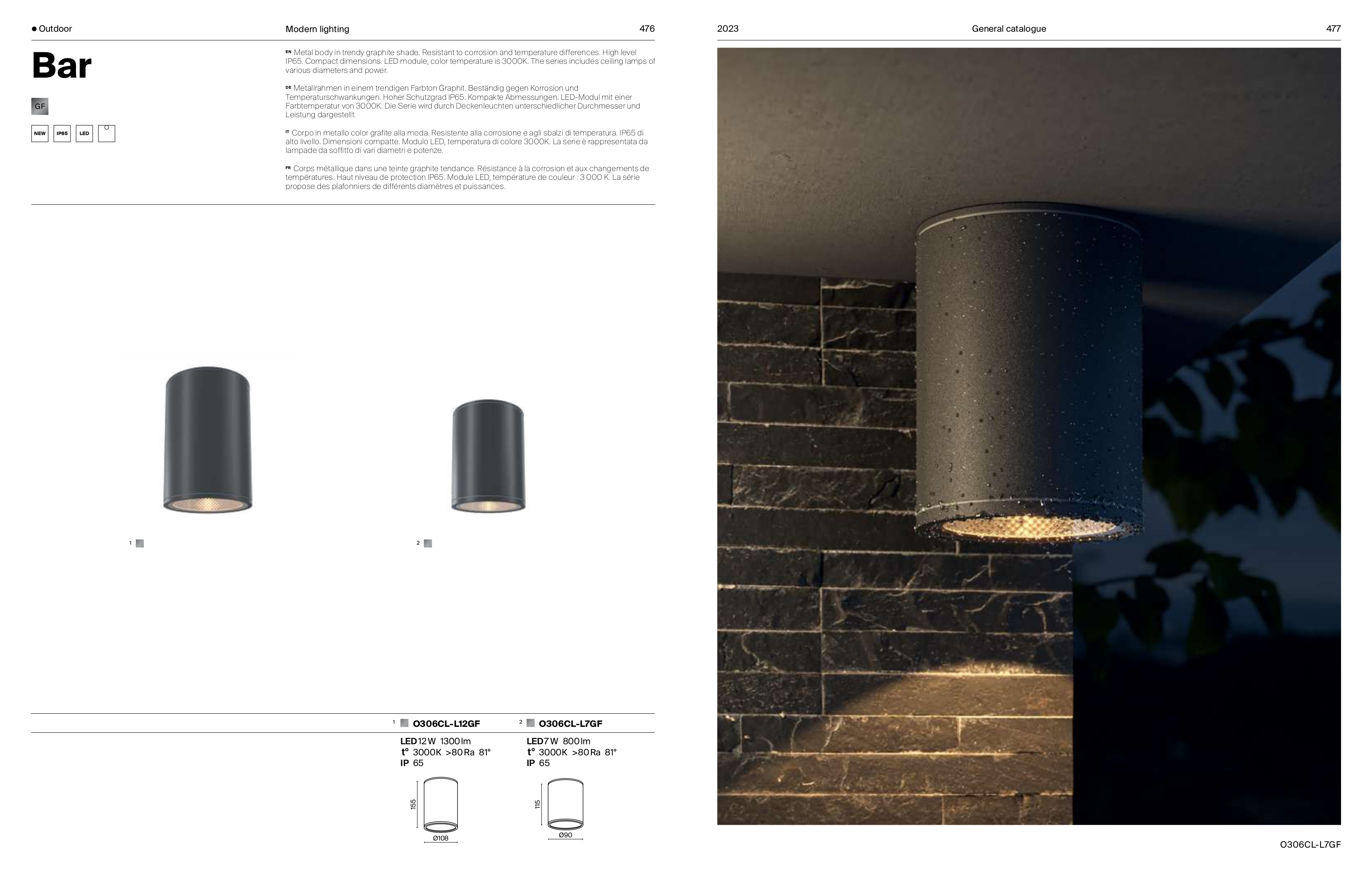 Осветителното тяло O306CL-L7GF представлява лед външна лампа в съвременен стил. O306CL-L7GF е от категорията и е подходящо за осветяване на различни помещения и пространства като: външно осветление, фасадно осветление.
