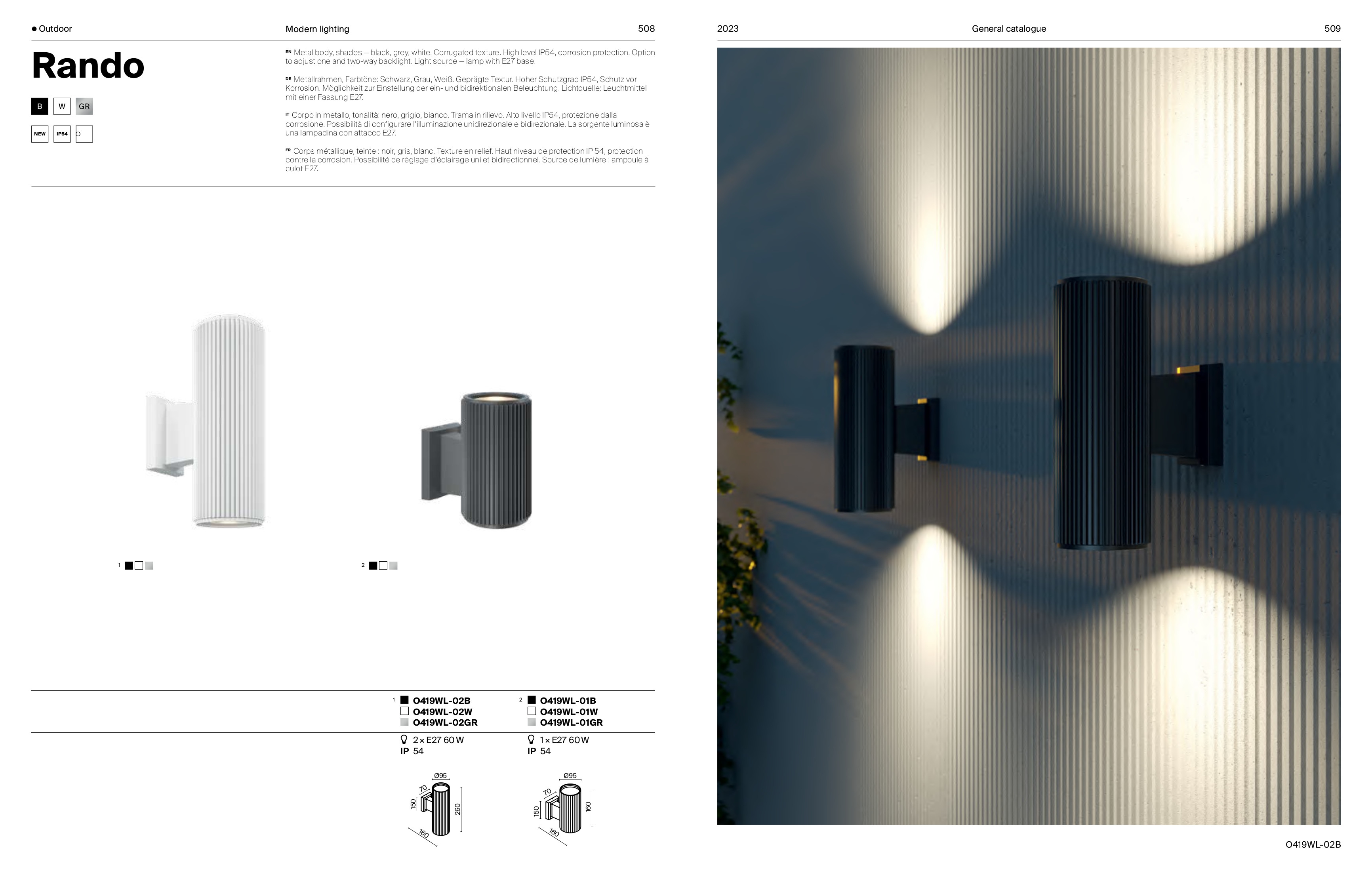 Осветителното тяло O419WL-01GR представлява аплик, външна лампа в съвременен стил. O419WL-01GR е от категорията осветителни тела и е подходящо за осветяване на различни помещения и пространства като: външно осветление, фасадно осветление.