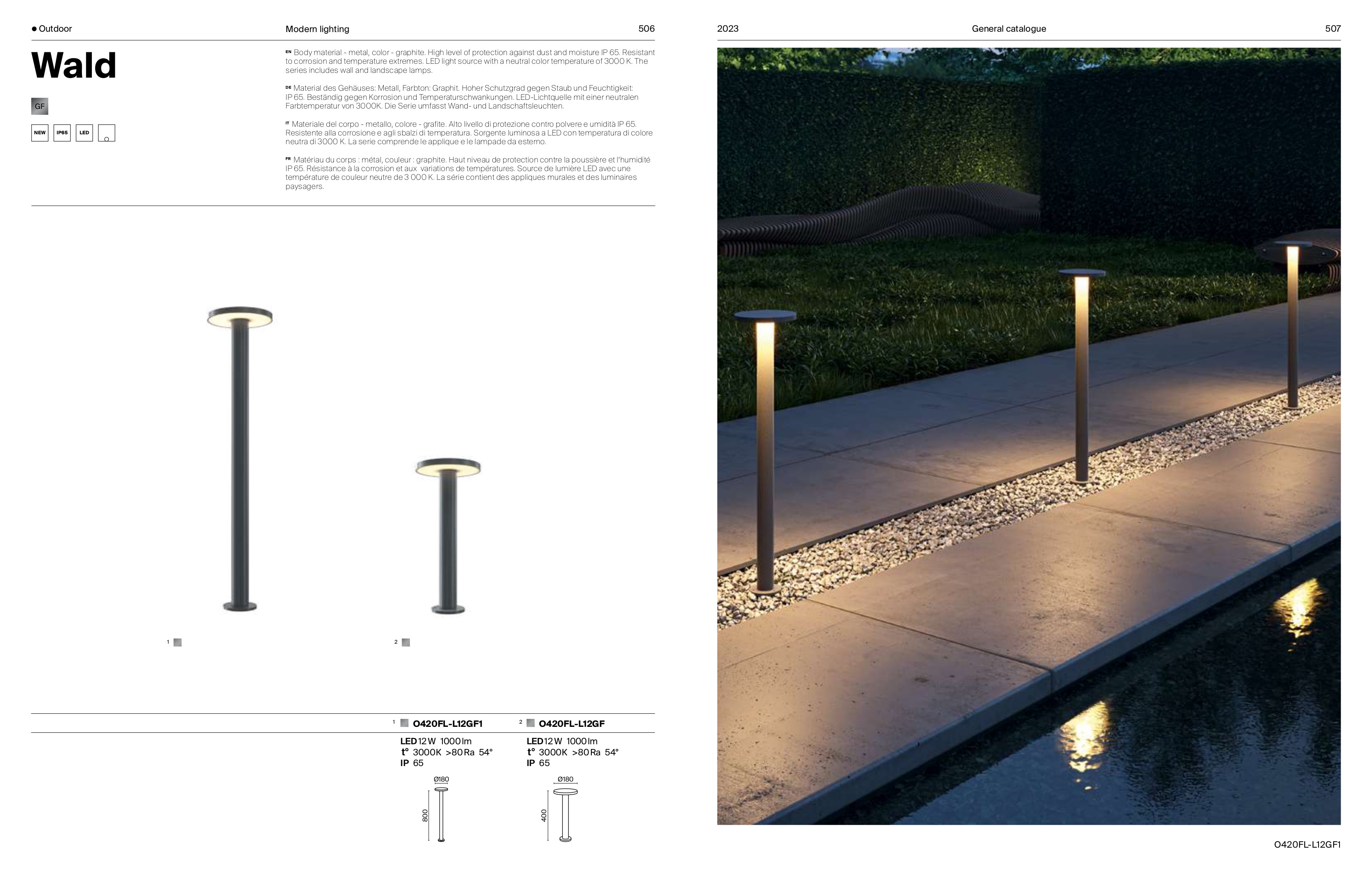 Осветителното тяло O420FL-L12GF1 представлява външна лампа в съвременен стил. O420FL-L12GF1 е от категорията осветителни тела и е подходящо за осветяване на различни помещения и пространства като: градинско осветление, външно осветление.