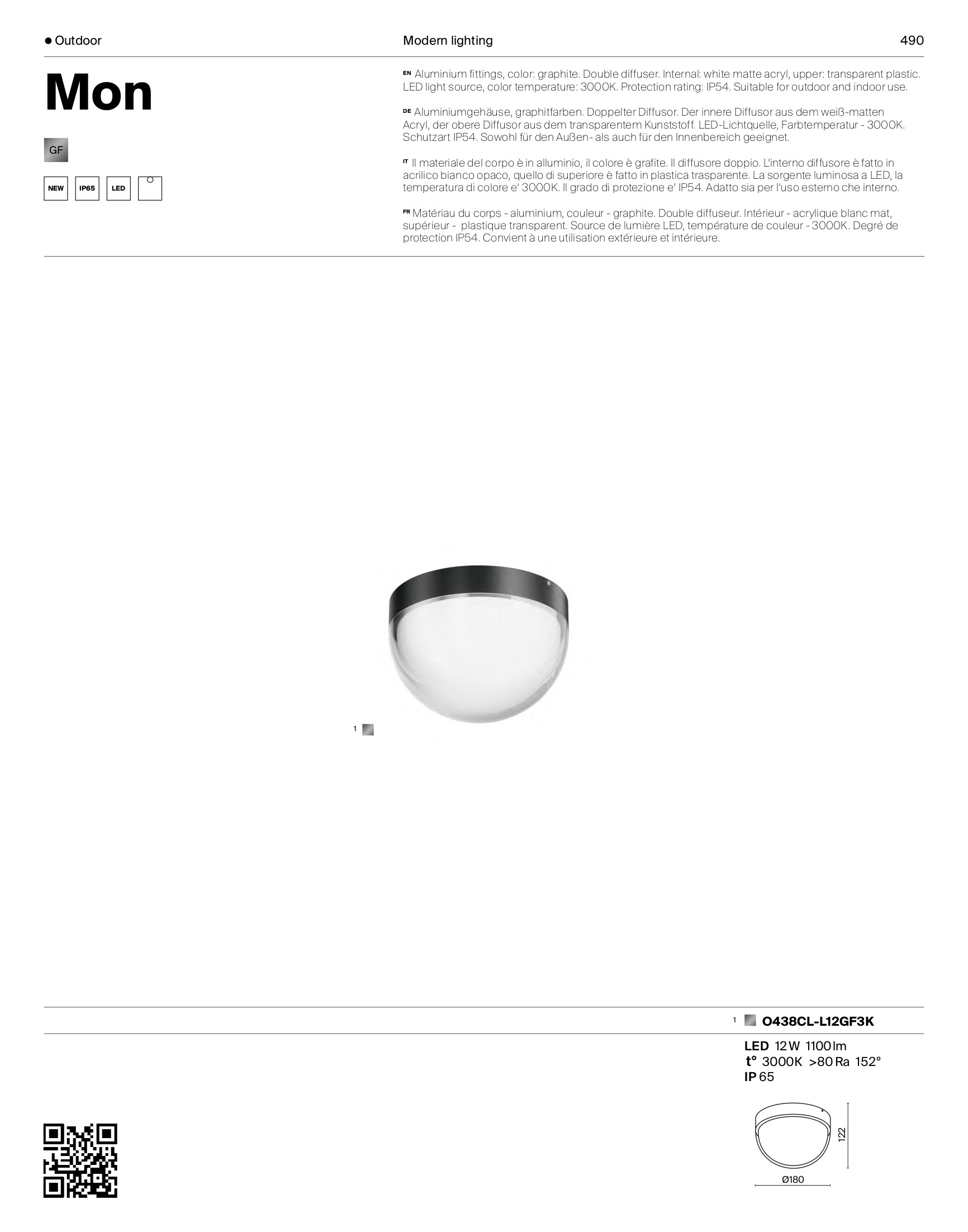 Осветителното тяло O438CL-L12GF3K представлява плафон, външна лампа в съвременен стил. O438CL-L12GF3K е от категорията осветителни тела и е подходящо за осветяване на различни помещения и пространства като: външно осветление, фасадно осветление.