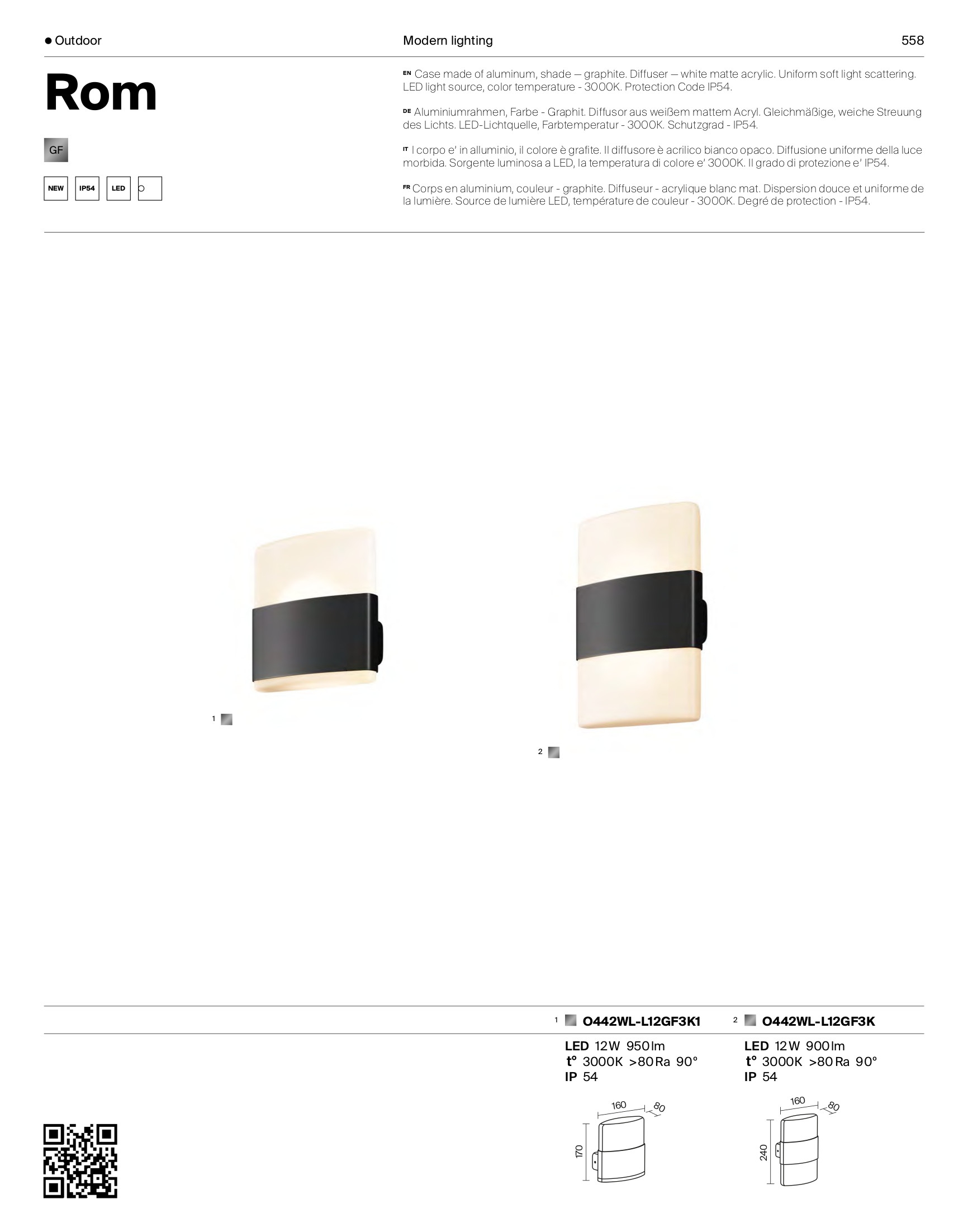Лед аплик, външна лампа O442WL-L12GF3K ще осигури комфорт и естетика във всяко помещение, в което се постави. Цялостната визия и дизайн на led лампата и вложените в изработката й материали, като алуминий в цвят графит, дифузьор от полимер в матово бяло, ще допринесат за един неповторим стил. Благодарение на дългогодишния опит в производството на лед осветление, качествените материали и строгия контрол на качеството на изработка на производителя Maytoni (Германия), O442WL-L12GF3K е на високо европейско ниво.