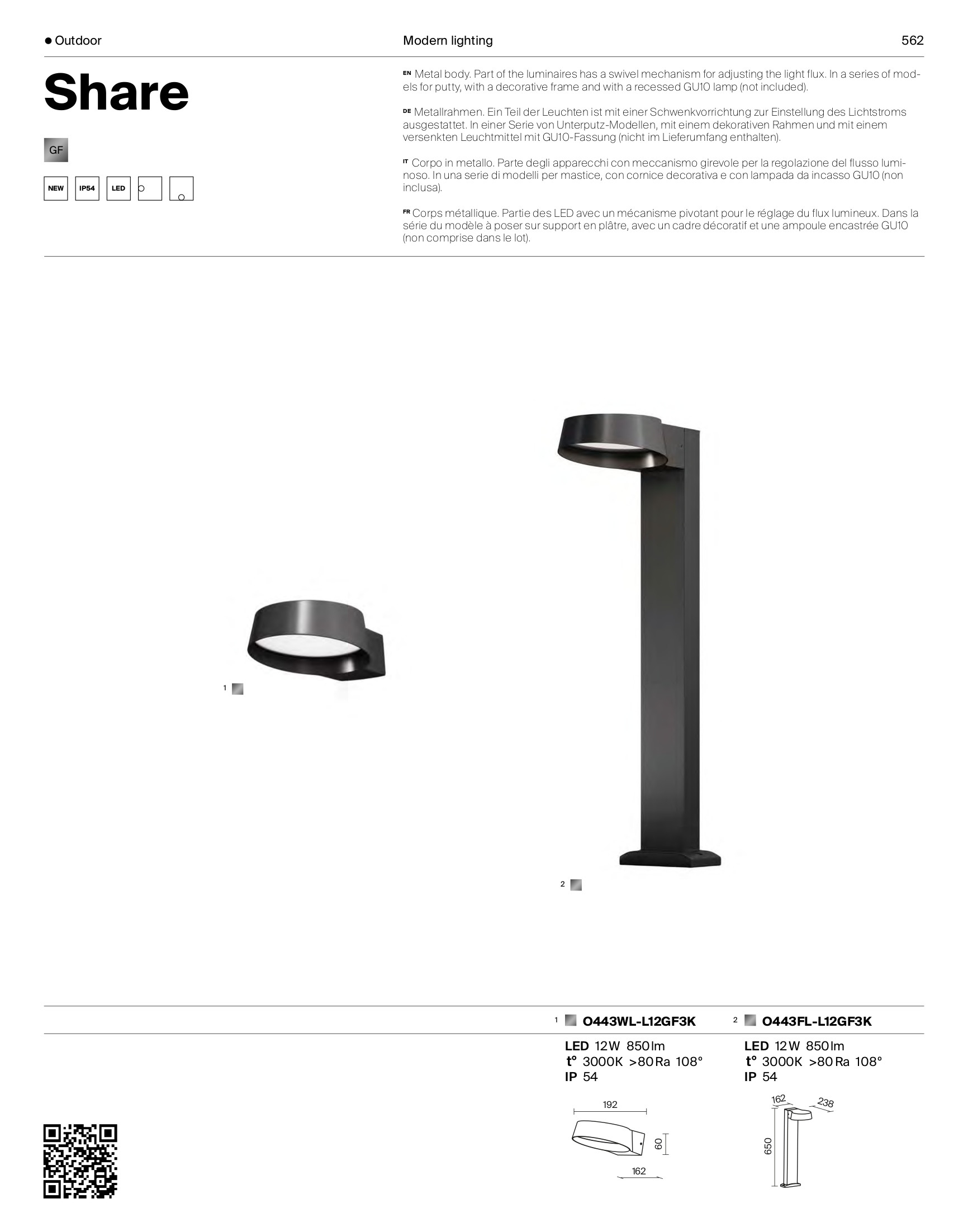 Осветителното тяло O443WL-L12GF3K представлява лед аплик, външна лампа в съвременен стил. O443WL-L12GF3K е от категорията и е подходящо за осветяване на различни помещения и пространства като: външно осветление, фасадно осветление.
