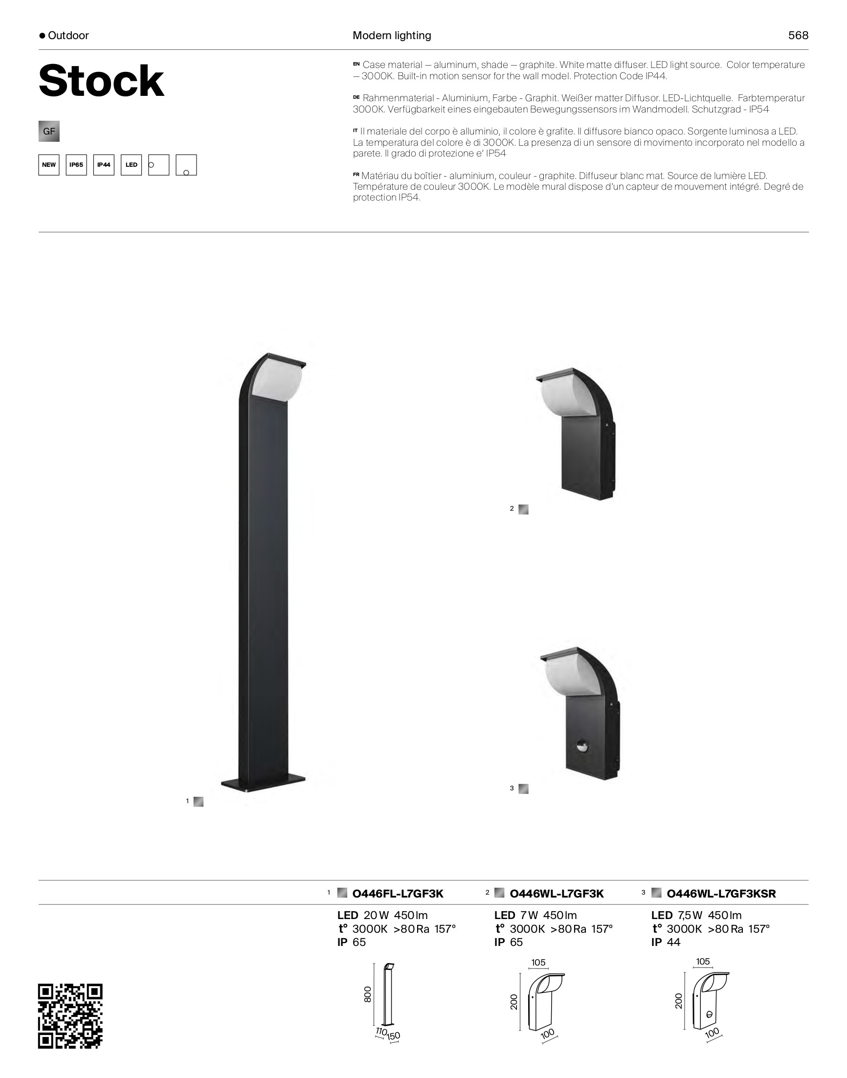 Осветителното тяло O446FL-L7GF3K представлява външна лампа в съвременен стил. O446FL-L7GF3K е от категорията осветителни тела и е подходящо за осветяване на различни помещения и пространства като: градинско осветление, външно осветление.
