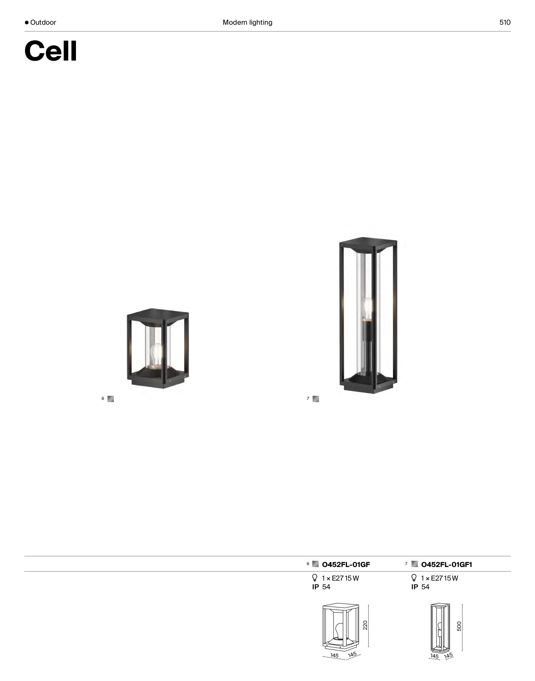Осветителното тяло O452FL-01GF представлява външна лампа в съвременен стил. O452FL-01GF е от категорията осветителни тела и е подходящо за осветяване на различни помещения и пространства като: градинско осветление, външно осветление.