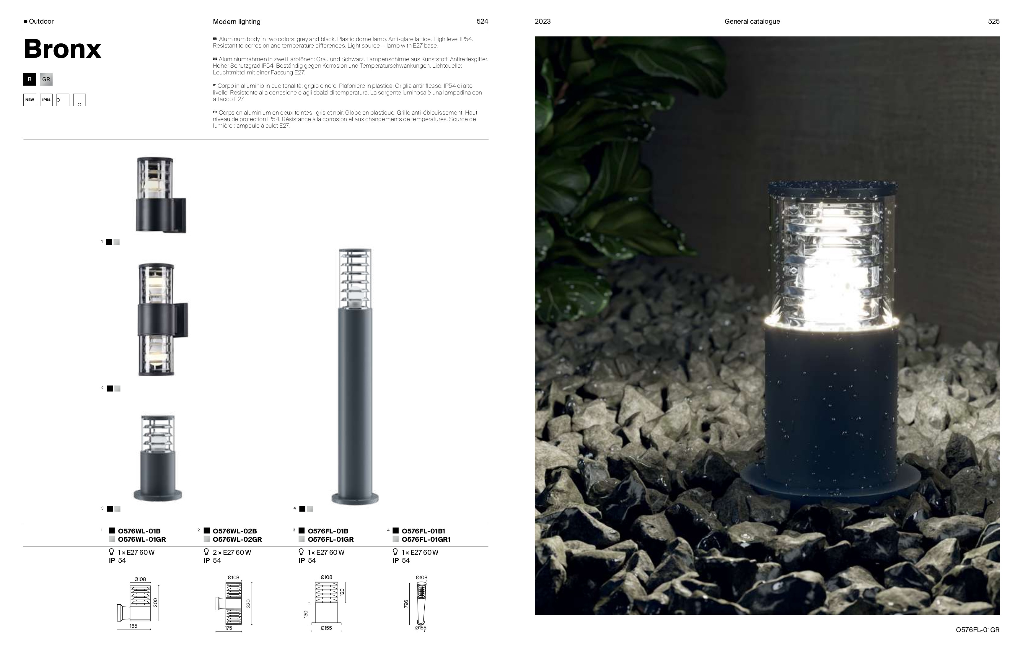 Осветителното тяло O576FL-01GR1 представлява външна лампа в съвременен стил. O576FL-01GR1 е от категорията осветителни тела и е подходящо за осветяване на различни помещения и пространства като: градинско осветление, външно осветление.