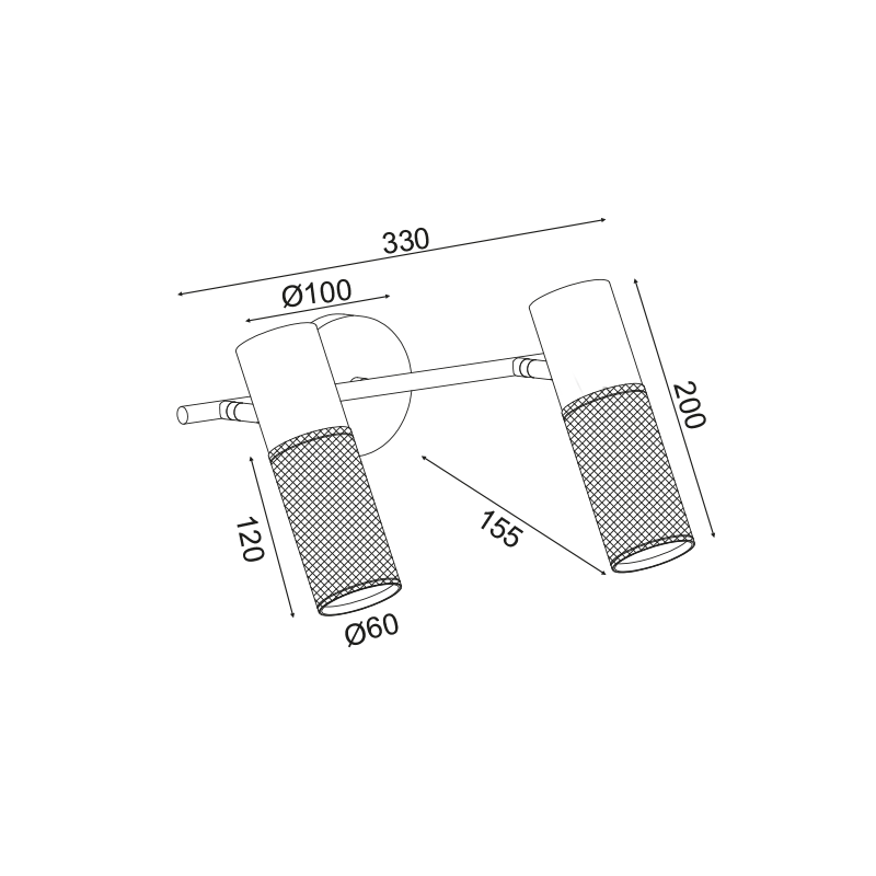 Ел. мощност 2 х 60 W Размери 72см x Ф6см x 120см Производител ACA-Lighting, Гърция